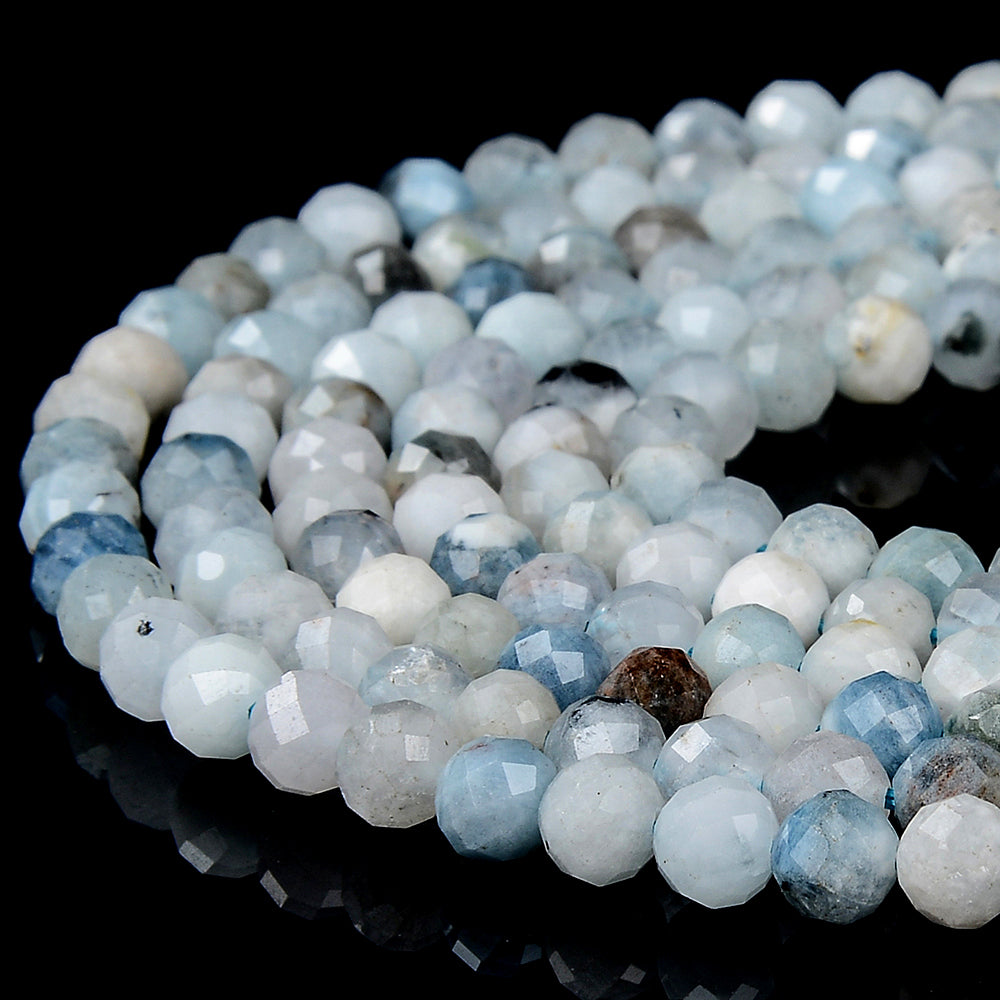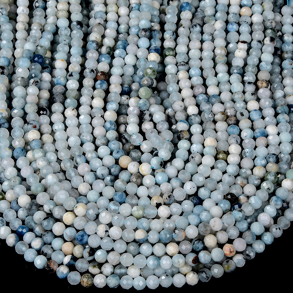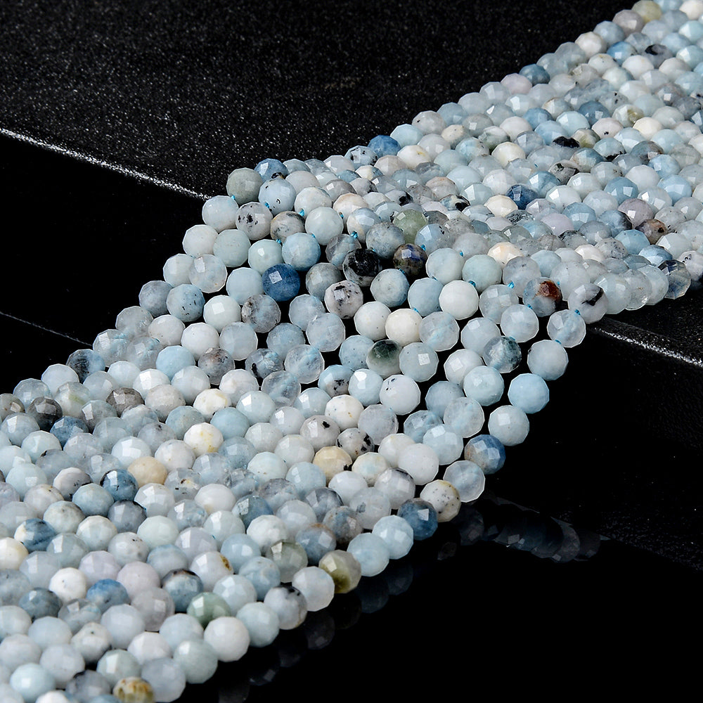Natural Aquamarine Gemstone Grade A Micro Faceted Round 4MM 5MM 6MM Loose Beads (P94)