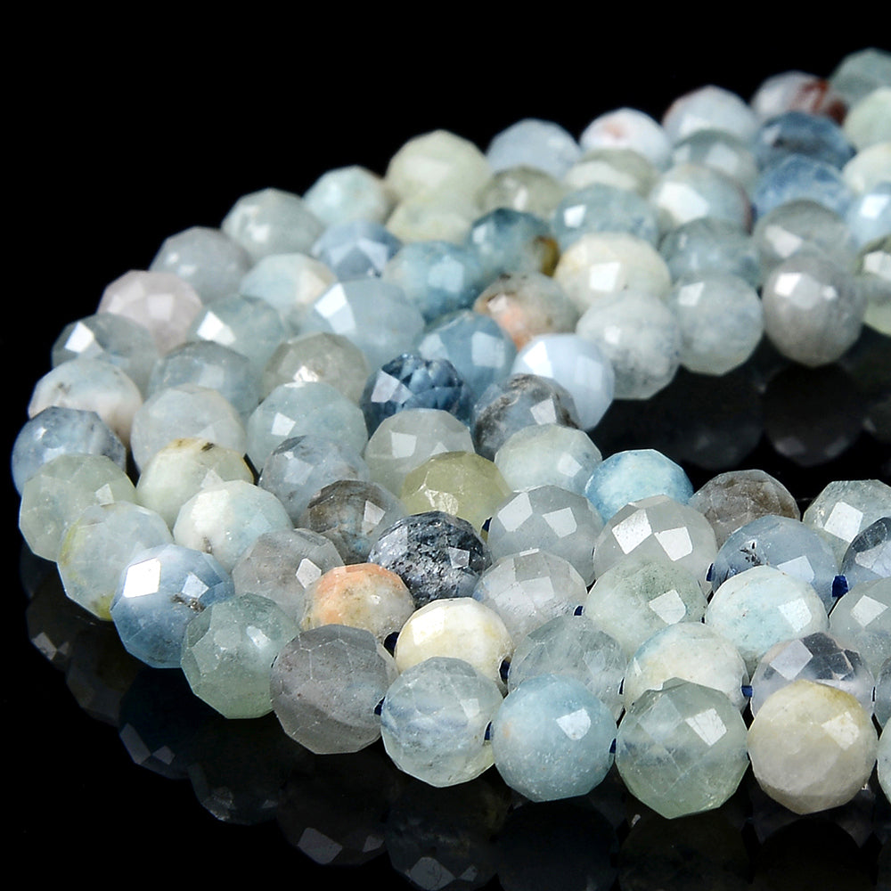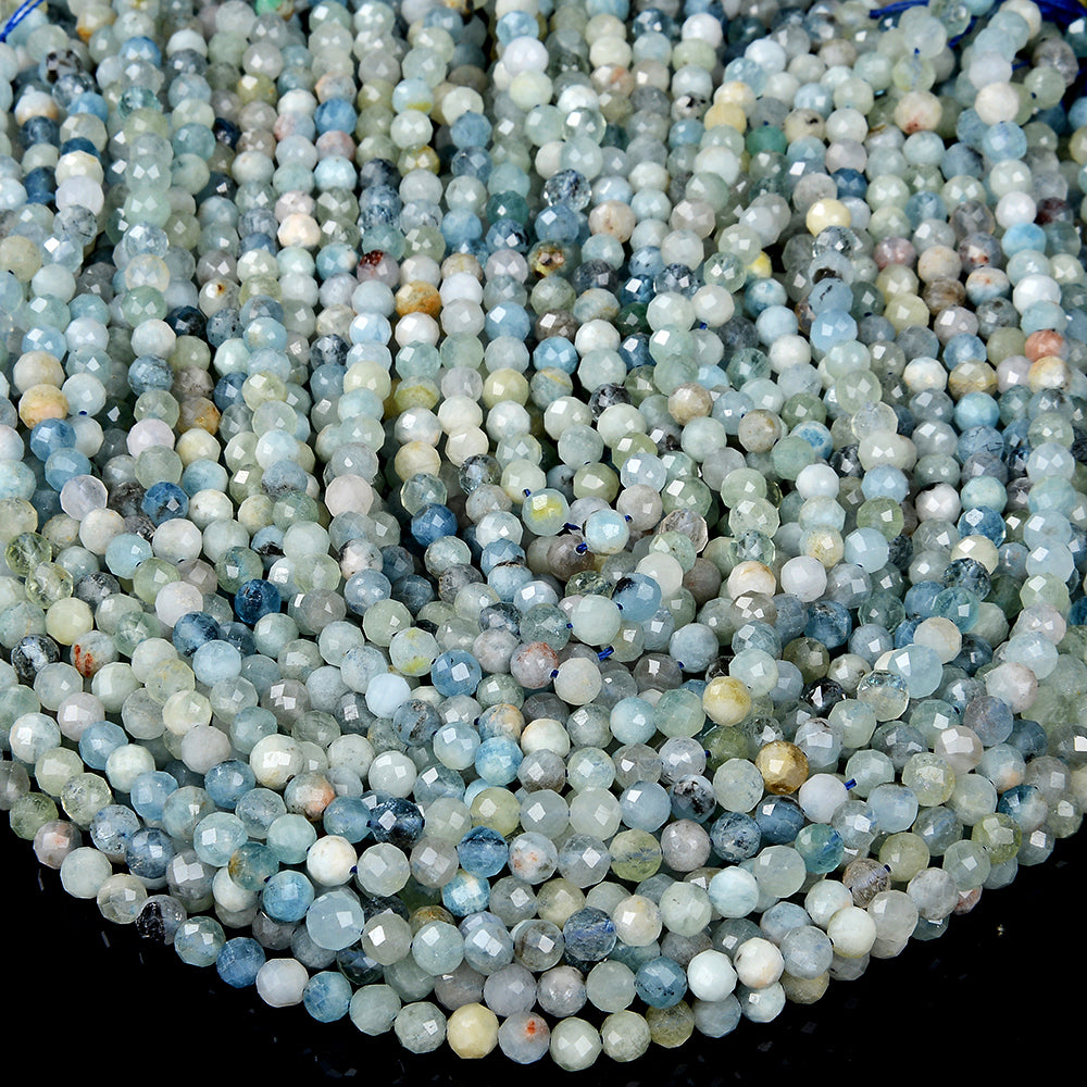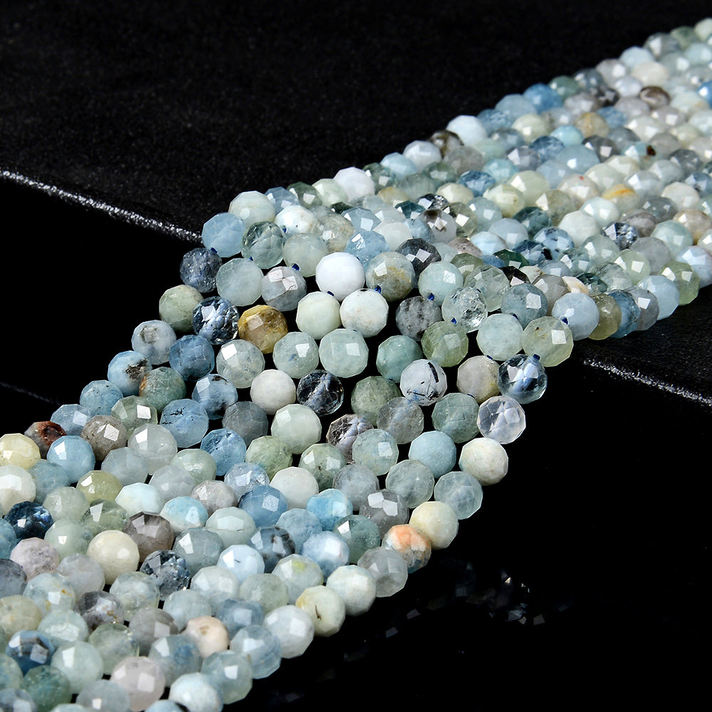 Natural Aquamarine Gemstone Grade A Micro Faceted Round 6MM Loose Beads (P94)