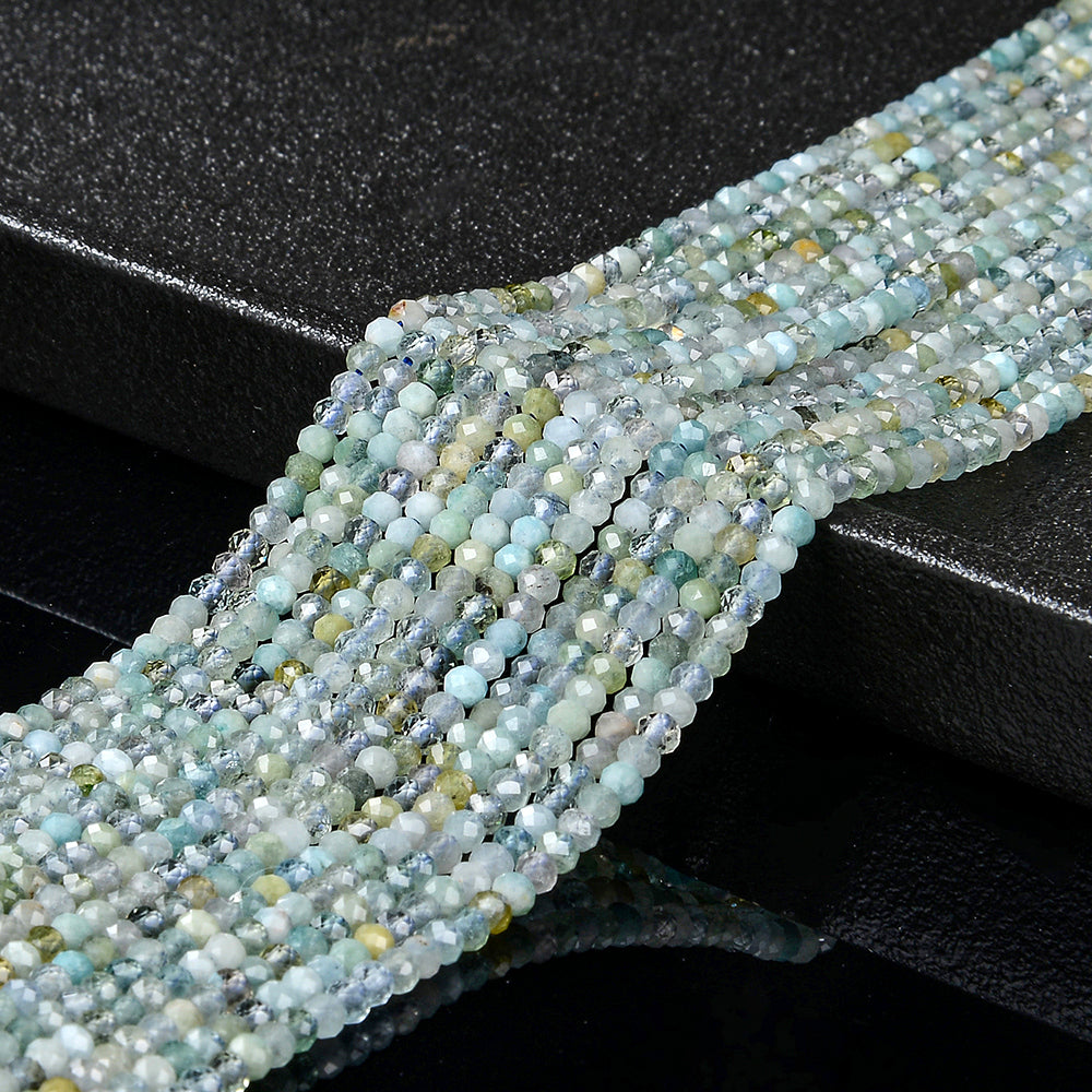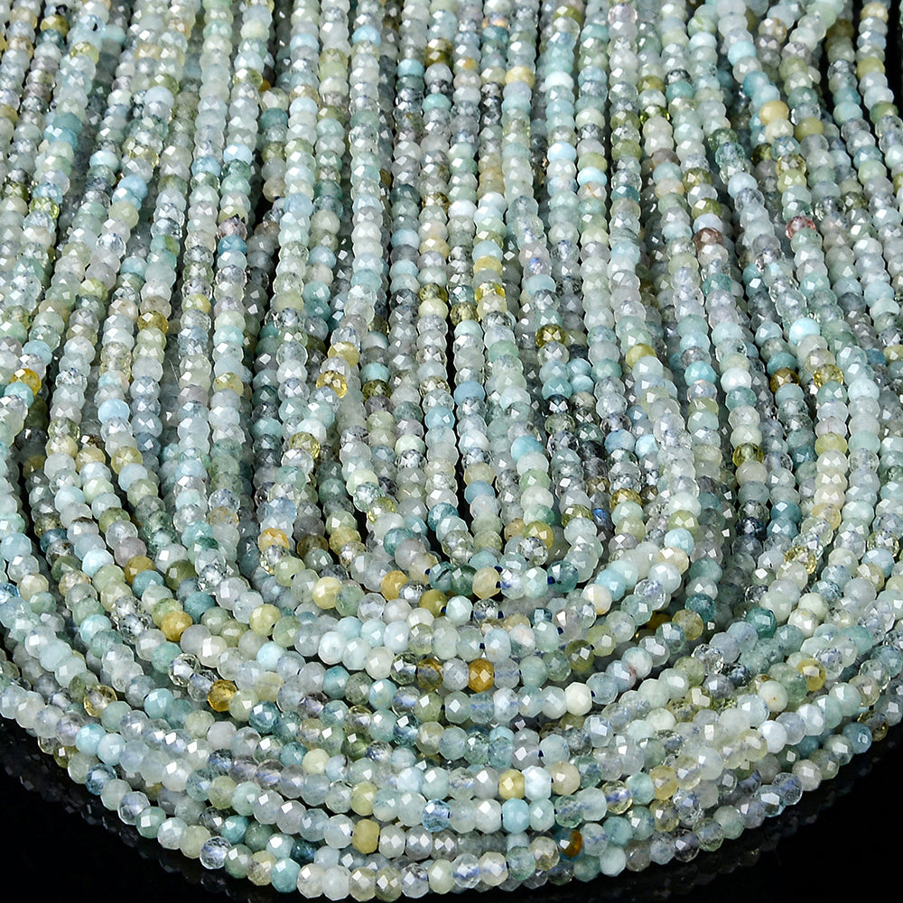 Natural Aquamarine Gemstone Grade AA 3X2MM Micro Faceted Rondelle Loose Beads 15 inch Full Strand (80018136-P90)