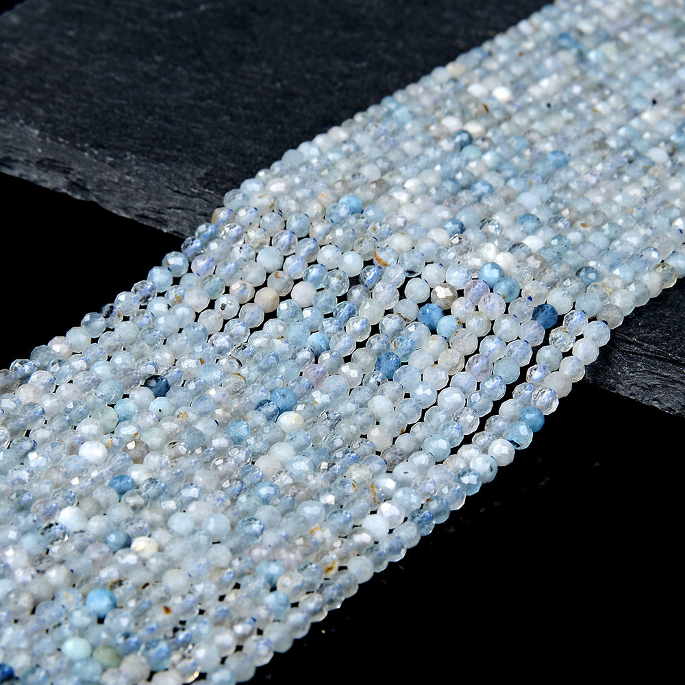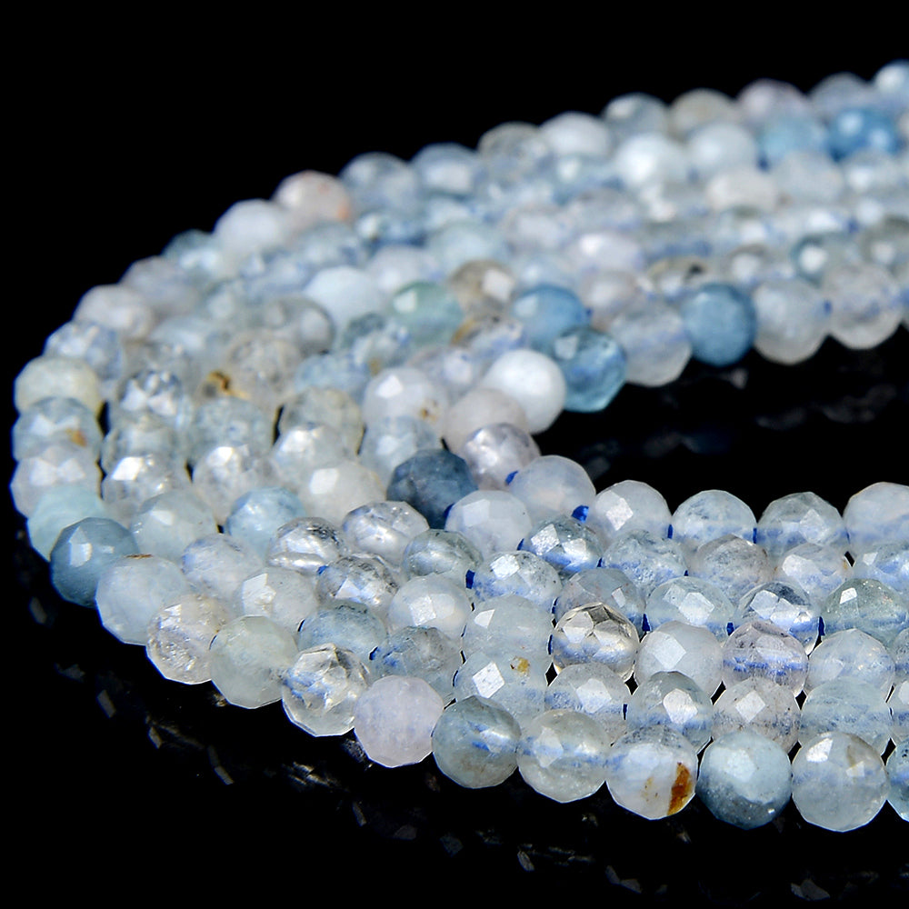 Natural Aquamarine Gemstone Grade AA Micro Faceted Round 3MM 4MM 5MM Loose Beads (P66)