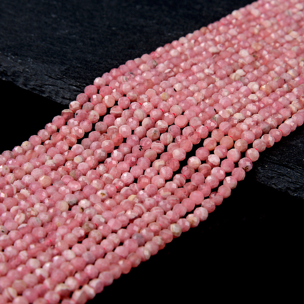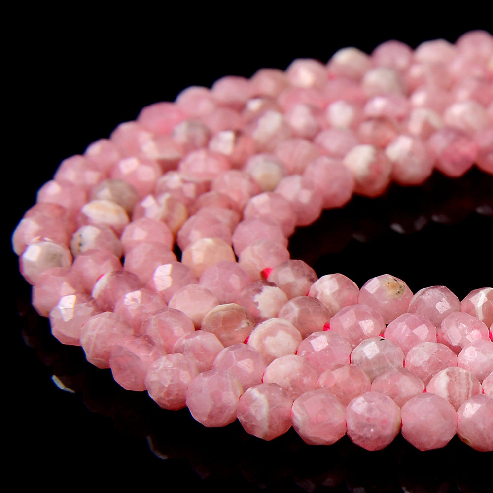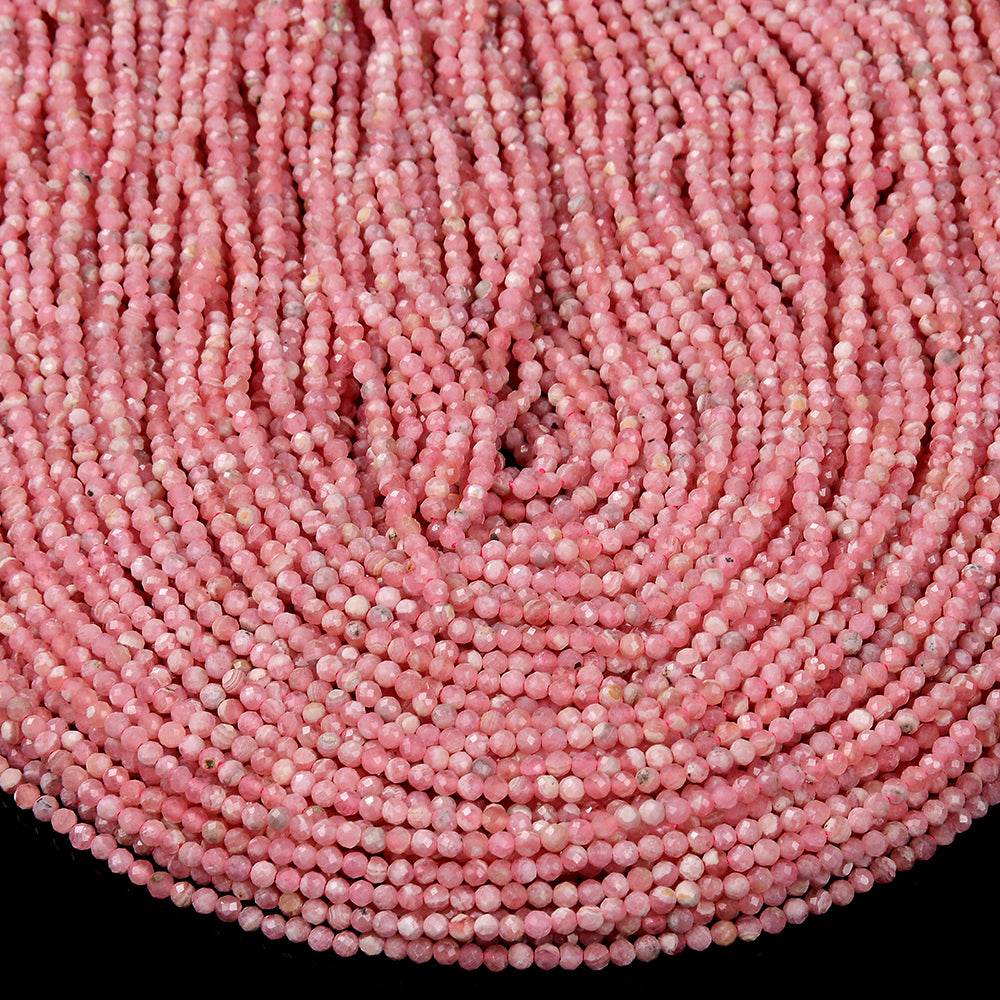 Natural Argentina Rhodochrosite Gemstone Grade AAA Micro Faceted Round 2MM 3MM Loose Beads (P64)
