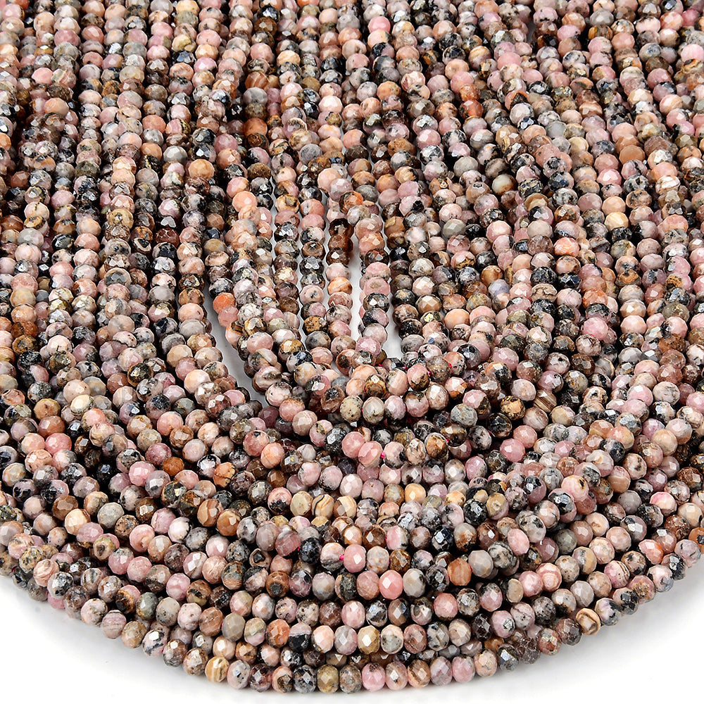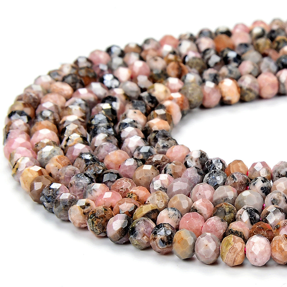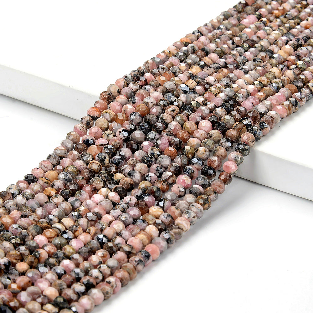 Natural Argentina Rhodochrosite Gemstone Micro Faceted Rondelle 4X3MM Loose Beads (P90)