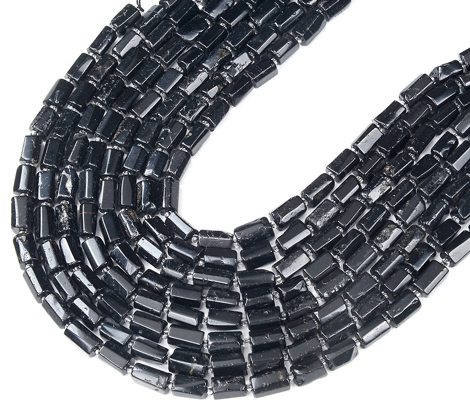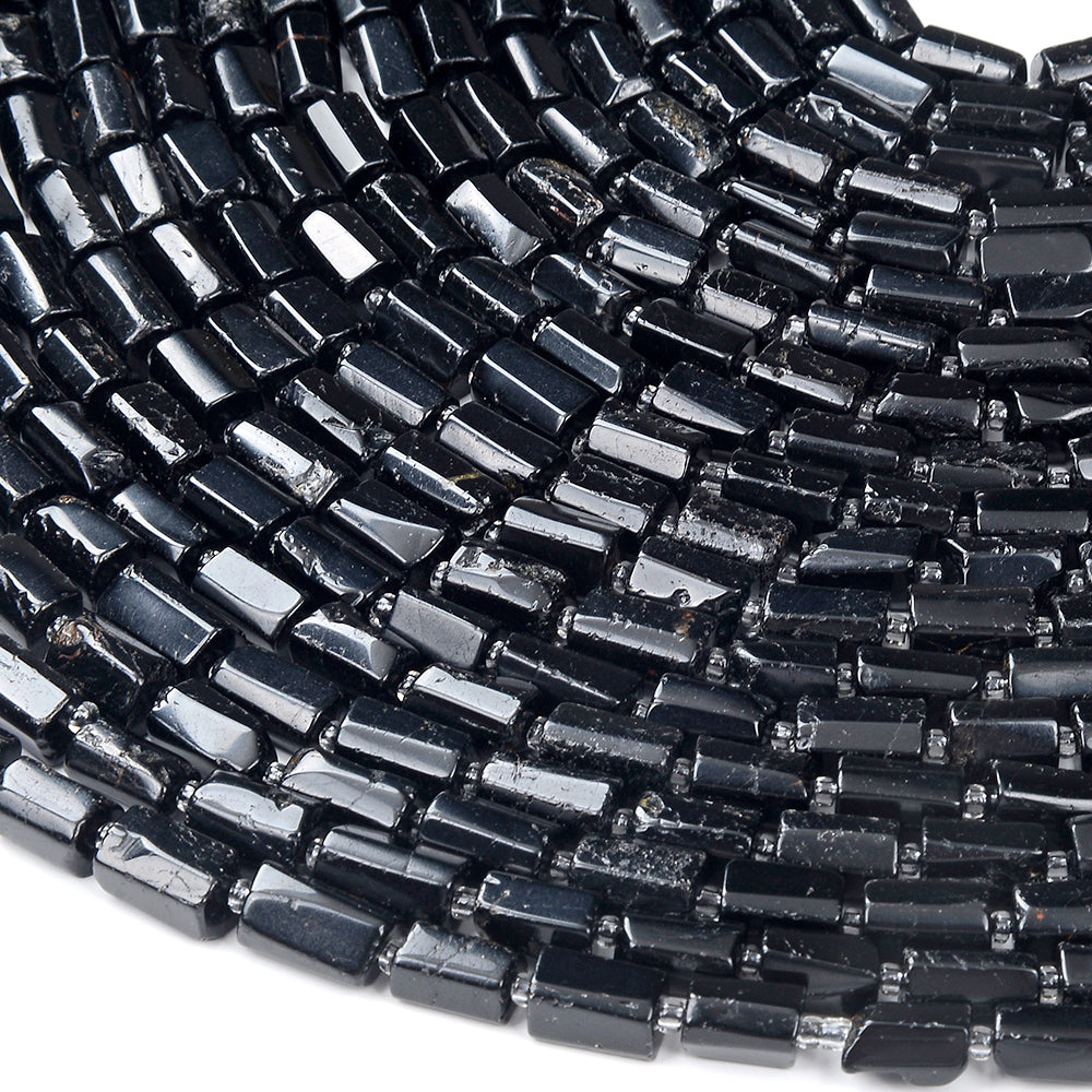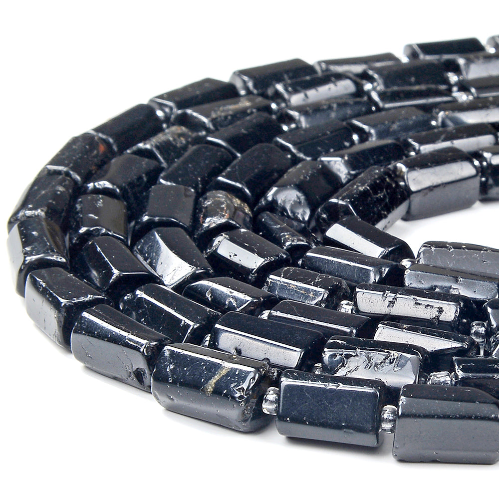 Natural Black Tourmaline Gemstone 12X8MM Faceted Cylinder Round Tube Loose Beads (D465)