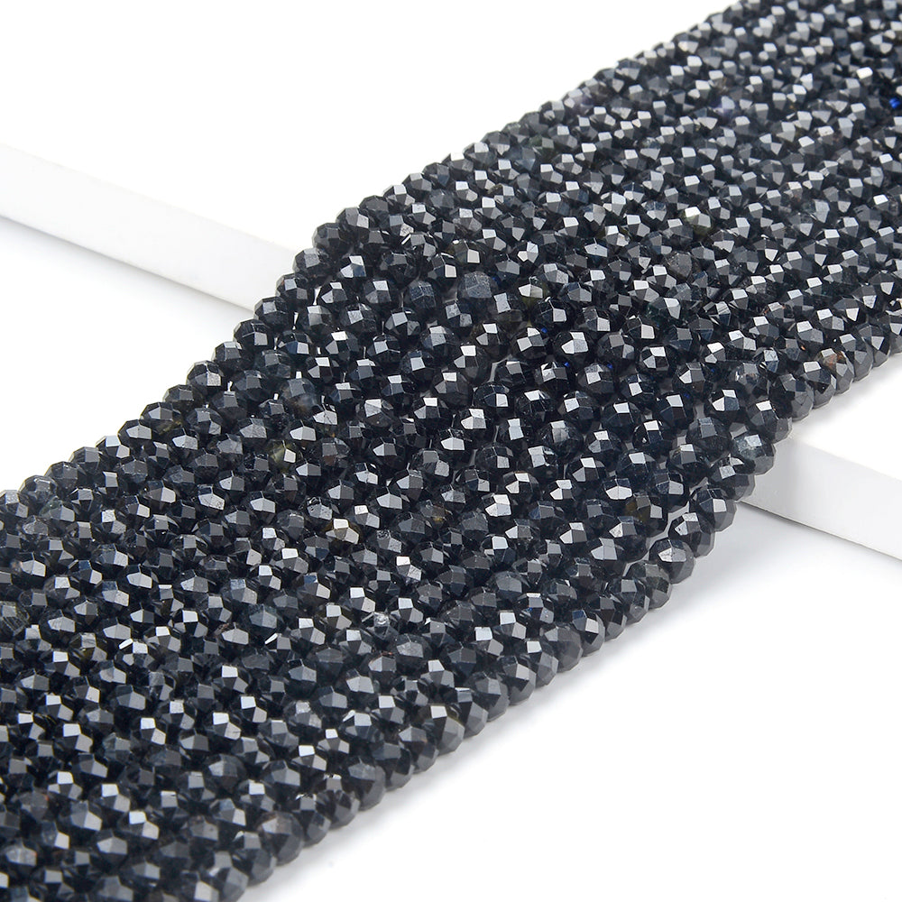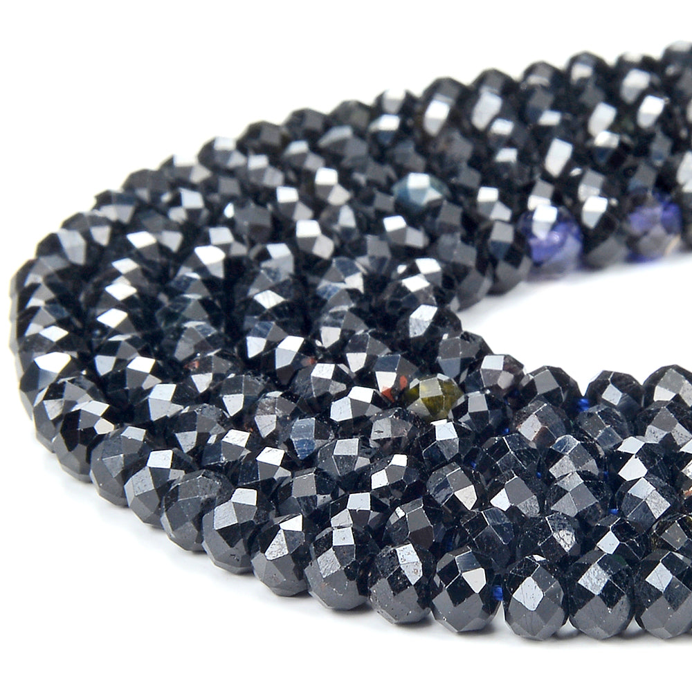 Natural Black Tourmaline Gemstone Grade AA Micro Faceted Rondelle 5X3MM Loose Beads (P90)