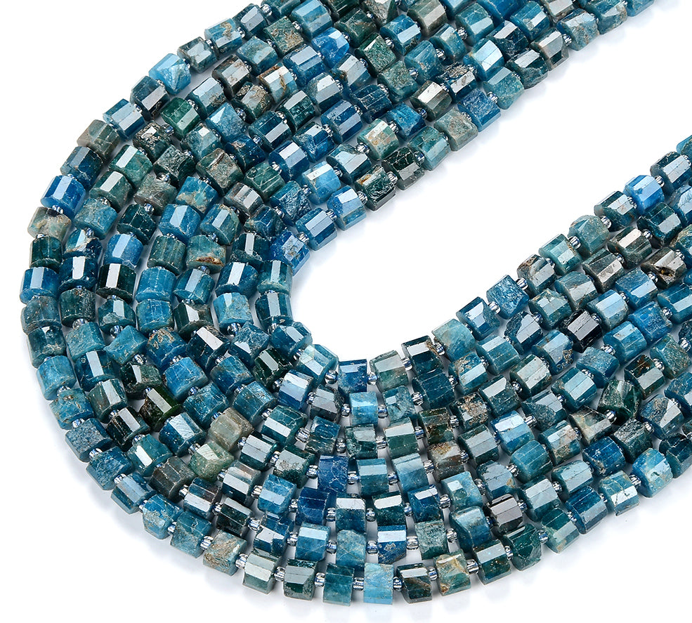 Natural Blue Apatite Gemstone Faceted Cylinder Wheel Tube 5X4MM 7X6MM 8X5MM 9X6MM 10X7MM Loose Beads (D417)