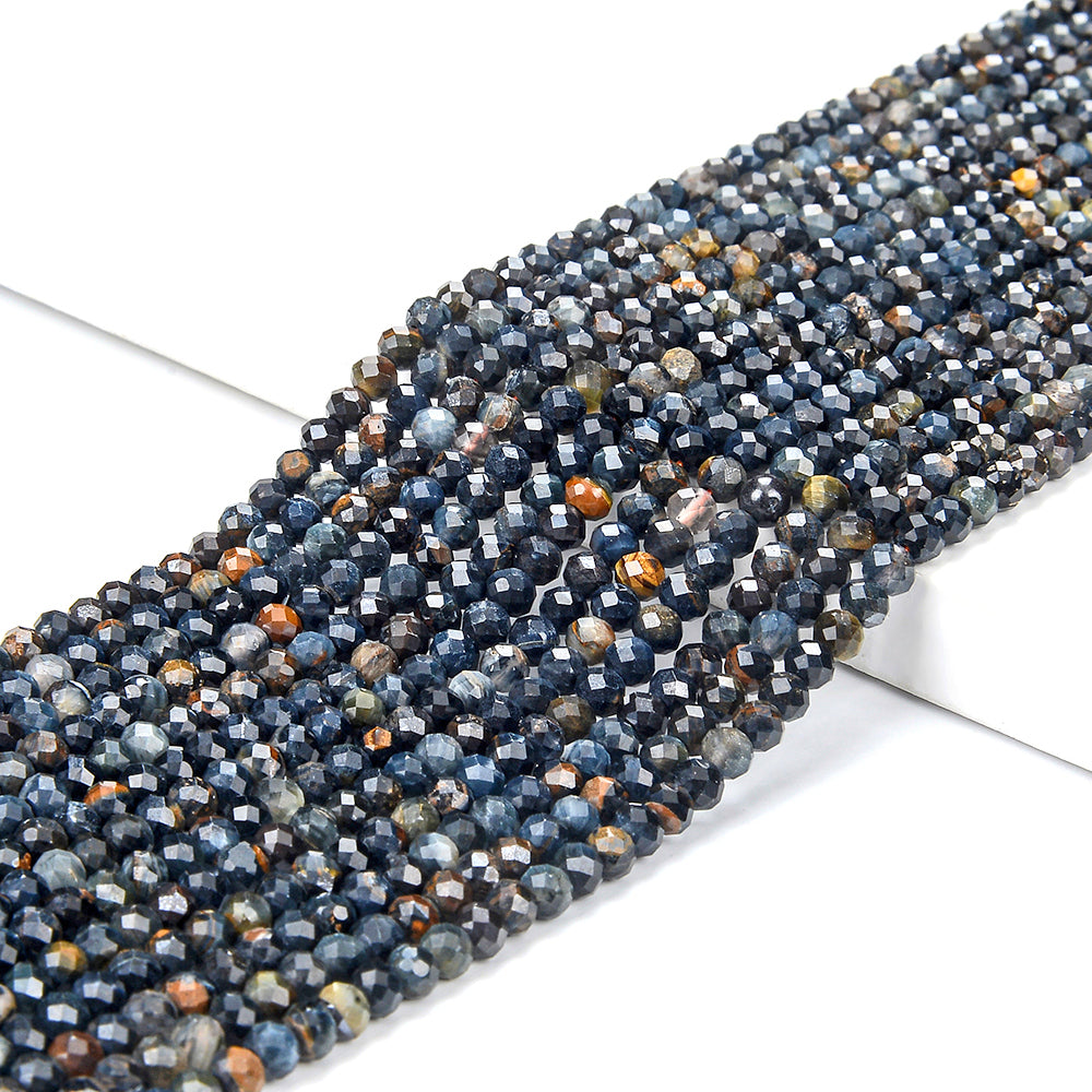 Natural Blue Pietersite Gemstone Grade AAA 3MM Micro Faceted Round Loose Beads 15 inch Full Strand (80018202-P95)