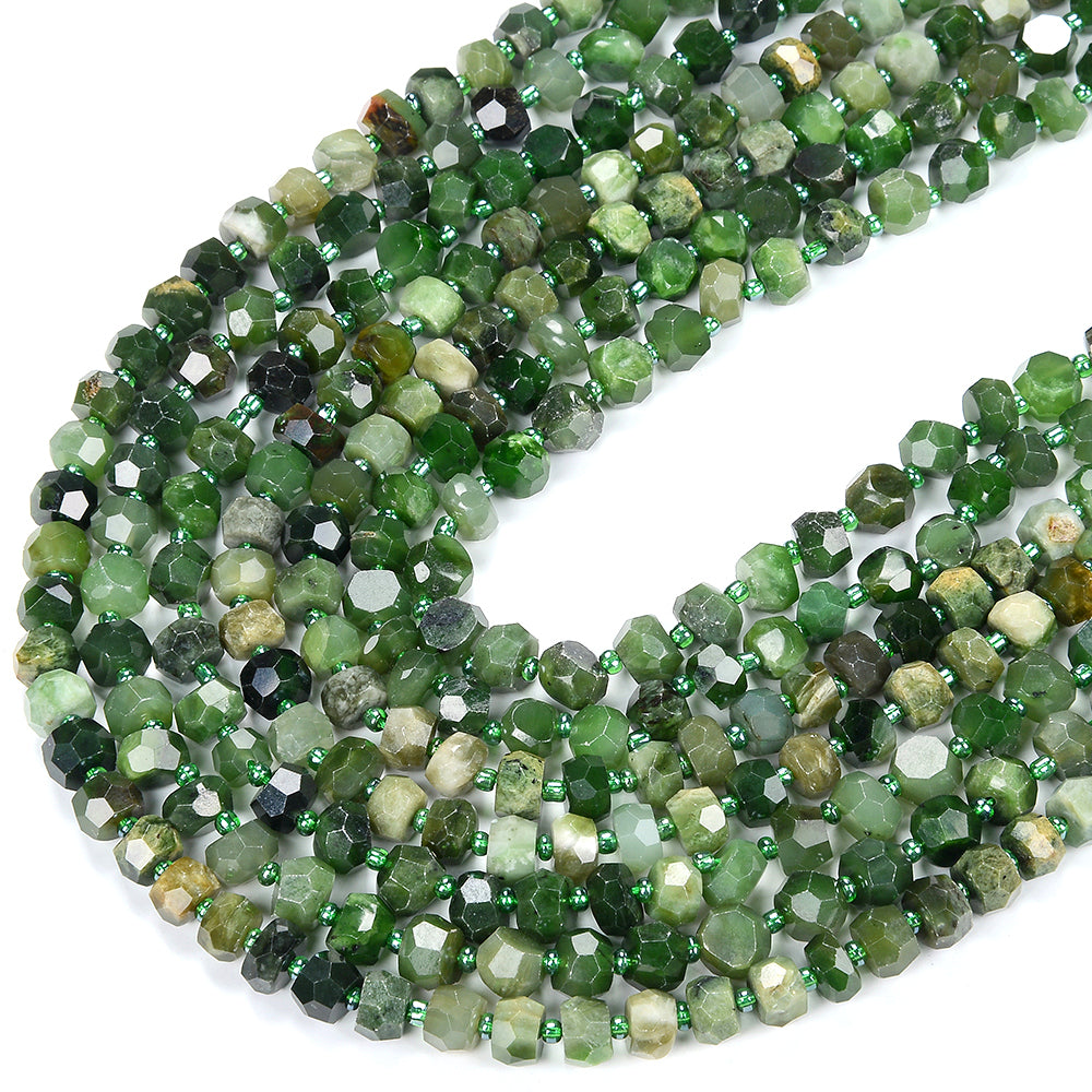 Natural Canadian Jade Gemstone Faceted Rondelle 8X5MM 9X7MM 10X7MM Loose Beads (D417)