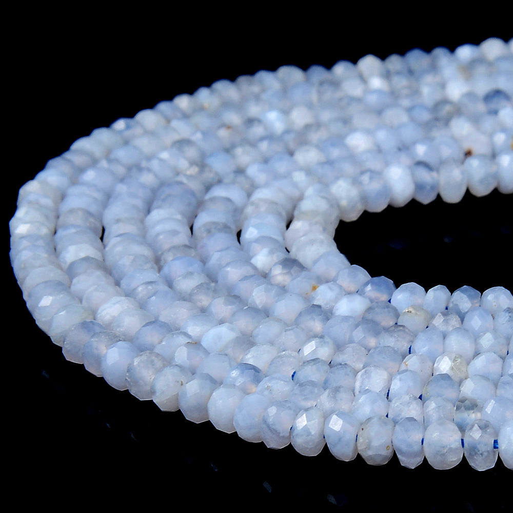 Natural Chalcedony Blue Lace Agate Gemstone Grade AA Micro Faceted Rondelle 4X3MM Loose Beads (P87)