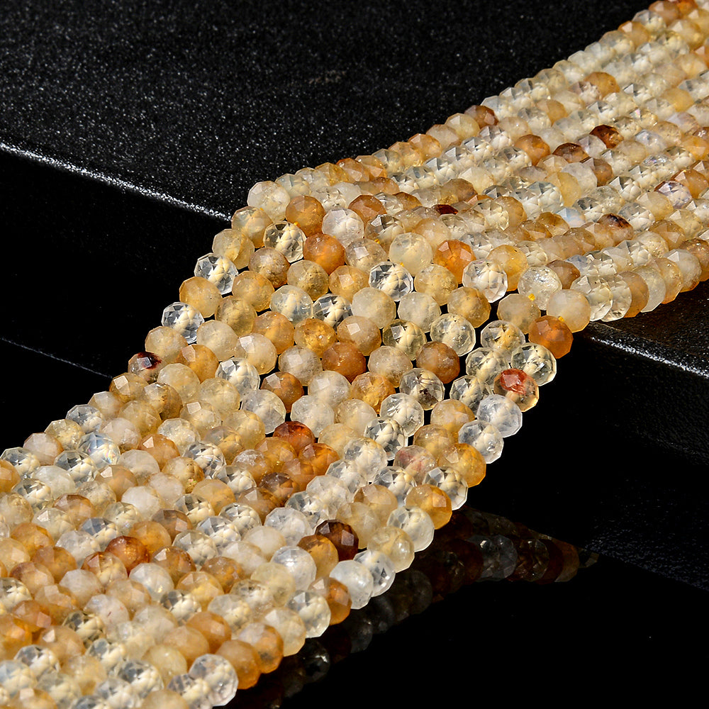 Citrine Gemstone, Micro Faceted Rondelle shaped, measures approximately 6X4MM , features a wonderful luster with excellent polish. Drilled hole. Color, tone, and quality of these Citrine beads are well matched on strand.