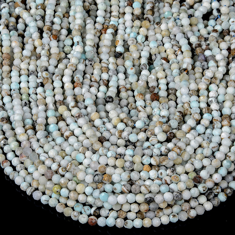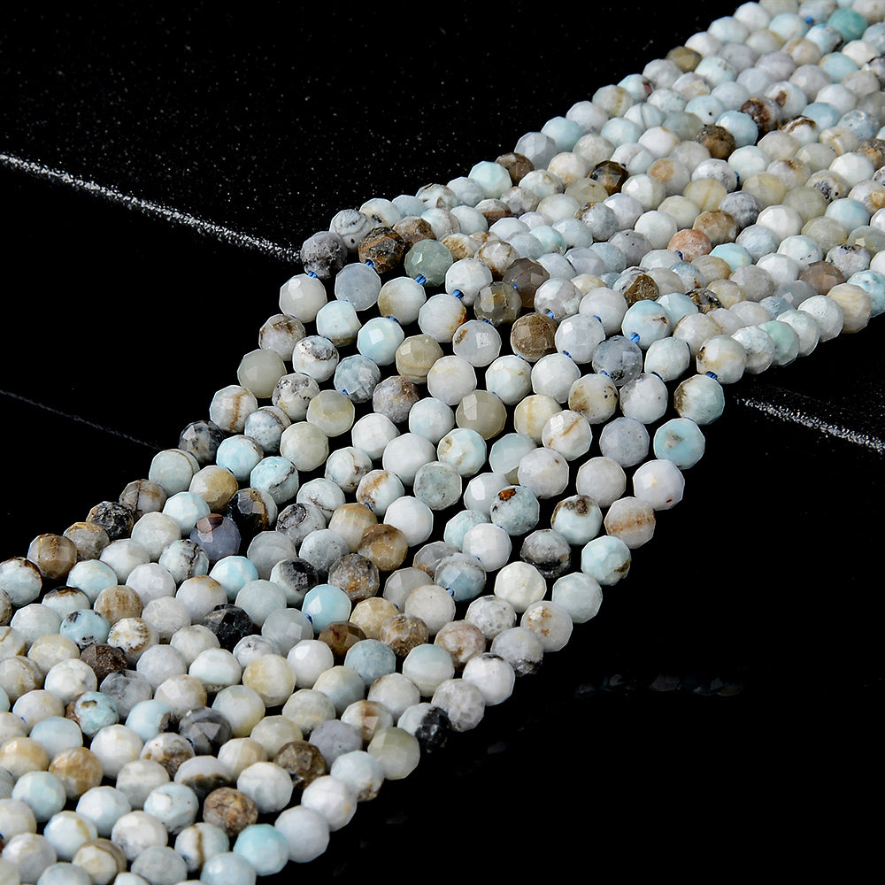 Natural Dominican Larimar Gemstone Grade A 4MM Micro Faceted Round Loose Beads 15 inch Full Strand (80018191-P95)