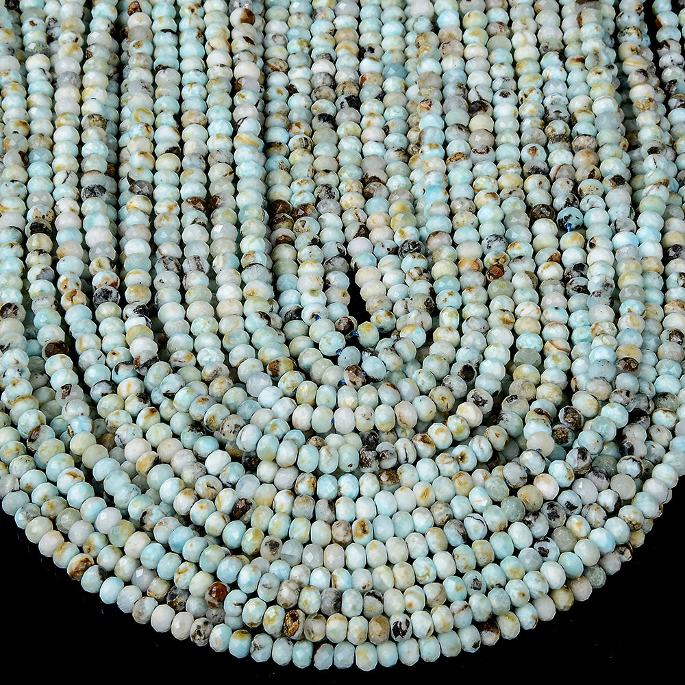 Natural Dominican Larimar Gemstone Grade A 5X3MM Micro Faceted Rondelle Loose Beads 15 inch Full Strand (80018123-P89)