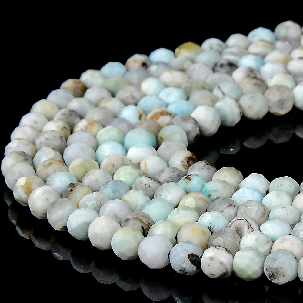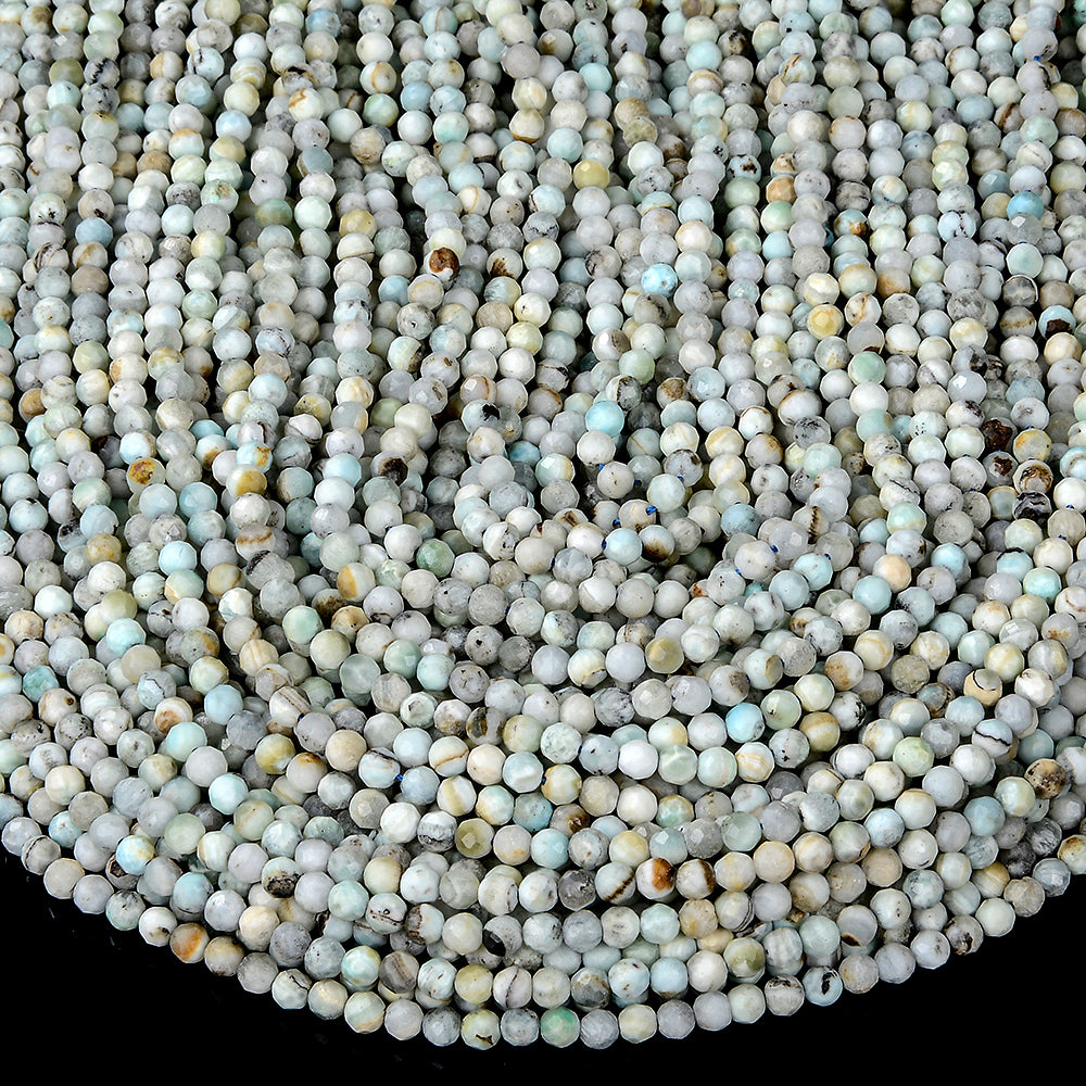 Natural Dominican Larimar Gemstone Grade A Micro Faceted Round 3MM 5MM Loose Beads 15 inch Full Strand (P95)