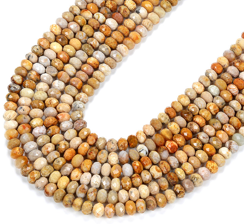Natural Fossil Coral Gemstone Grade AAA Faceted Rondelle 6X4MM 7X4MM 8X5MM 10X7MM Loose Beads (D345)