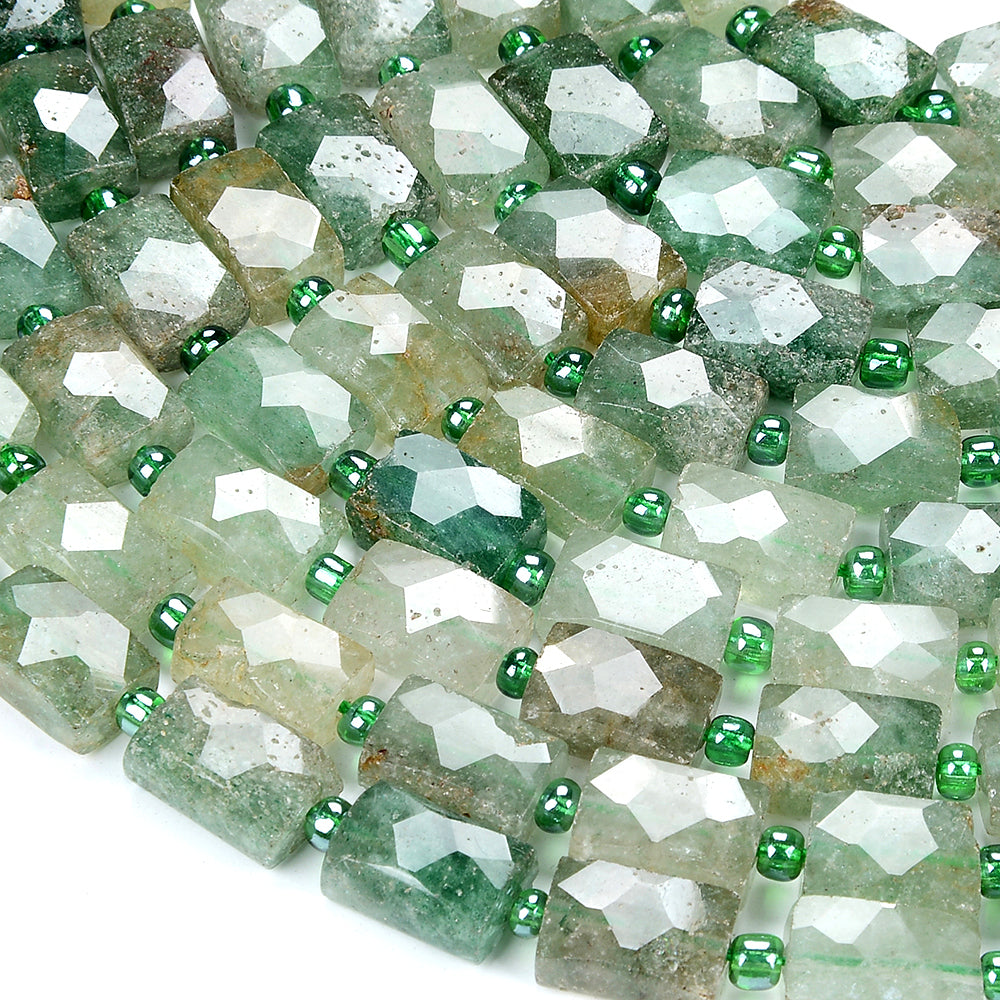Natural Green Lepidolite Gemstone 10X14MM Micro Faceted Rectangle Loose Beads (D418)
