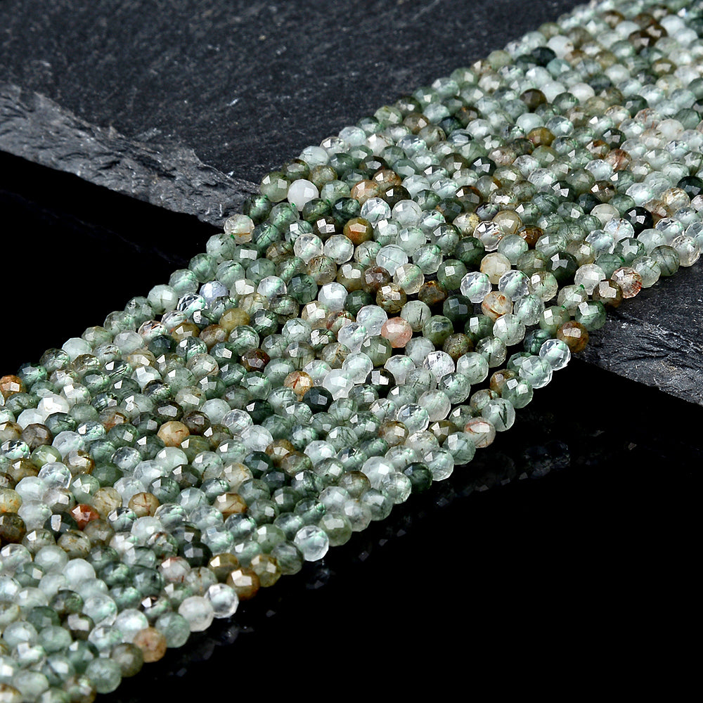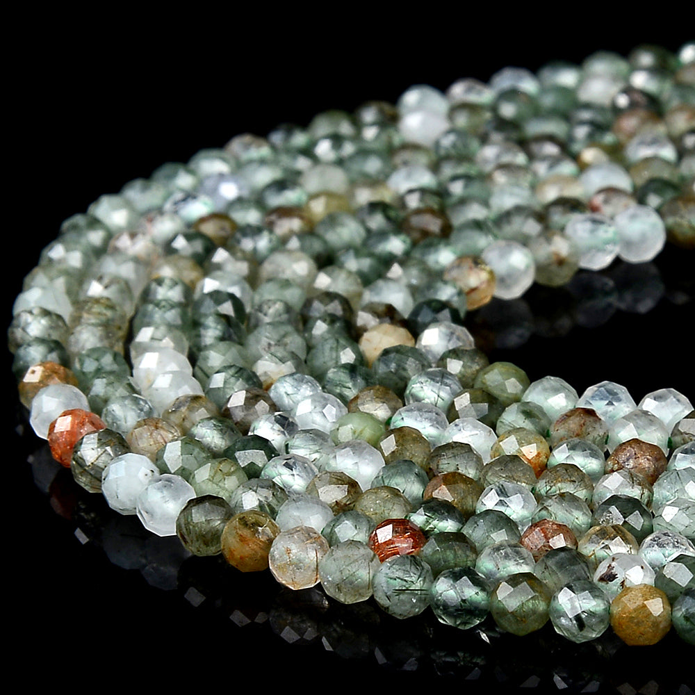 Natural Green Rutilated Quartz Gemstone Grade AAA 3MM Micro Faceted Round Loose Beads 15 inch Full Strand (80018201-P95)