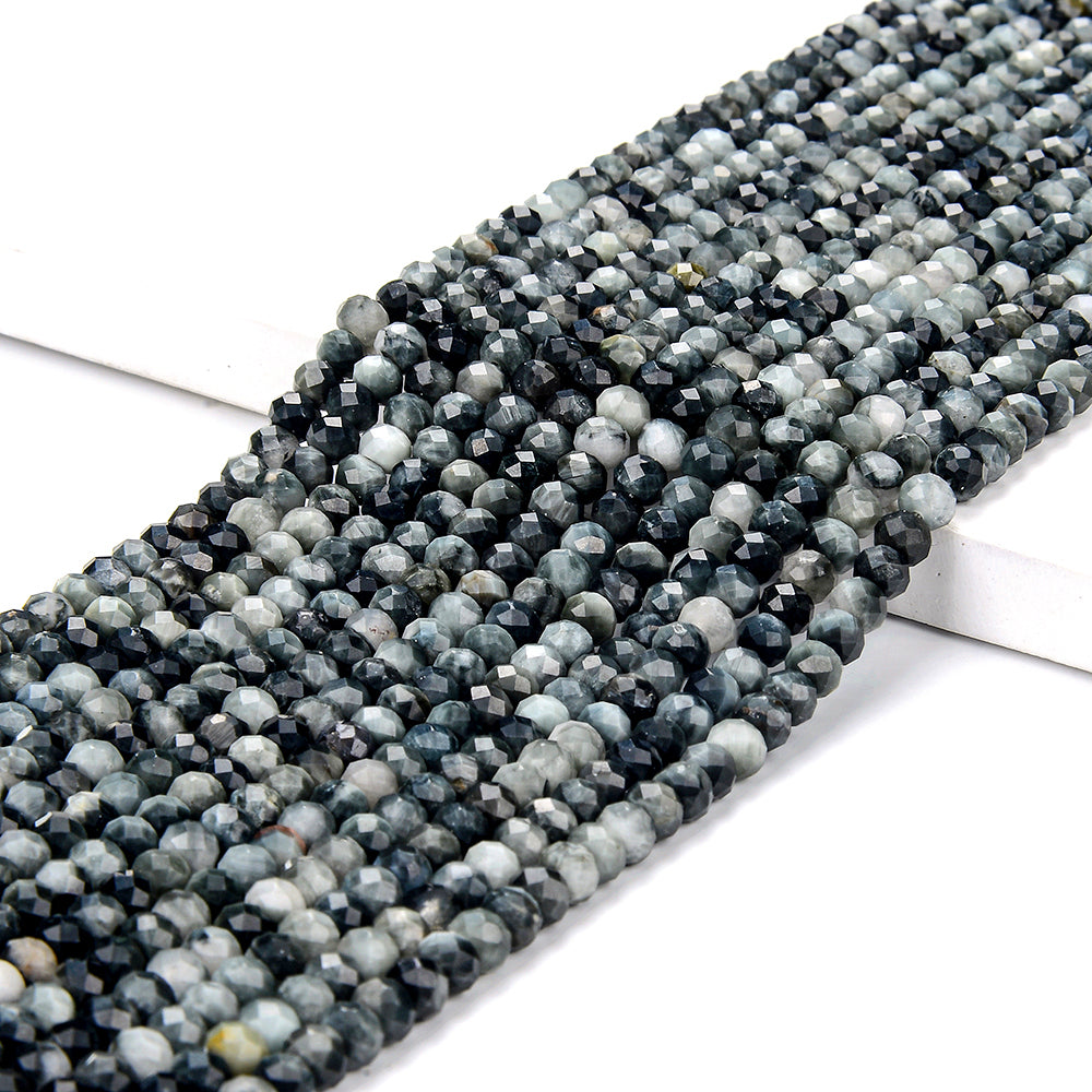 Natural Hawk Eye, Eagle's Eye Gemstone Grade AA Micro Faceted Rondelle 5X3MM Loose Beads (P92)