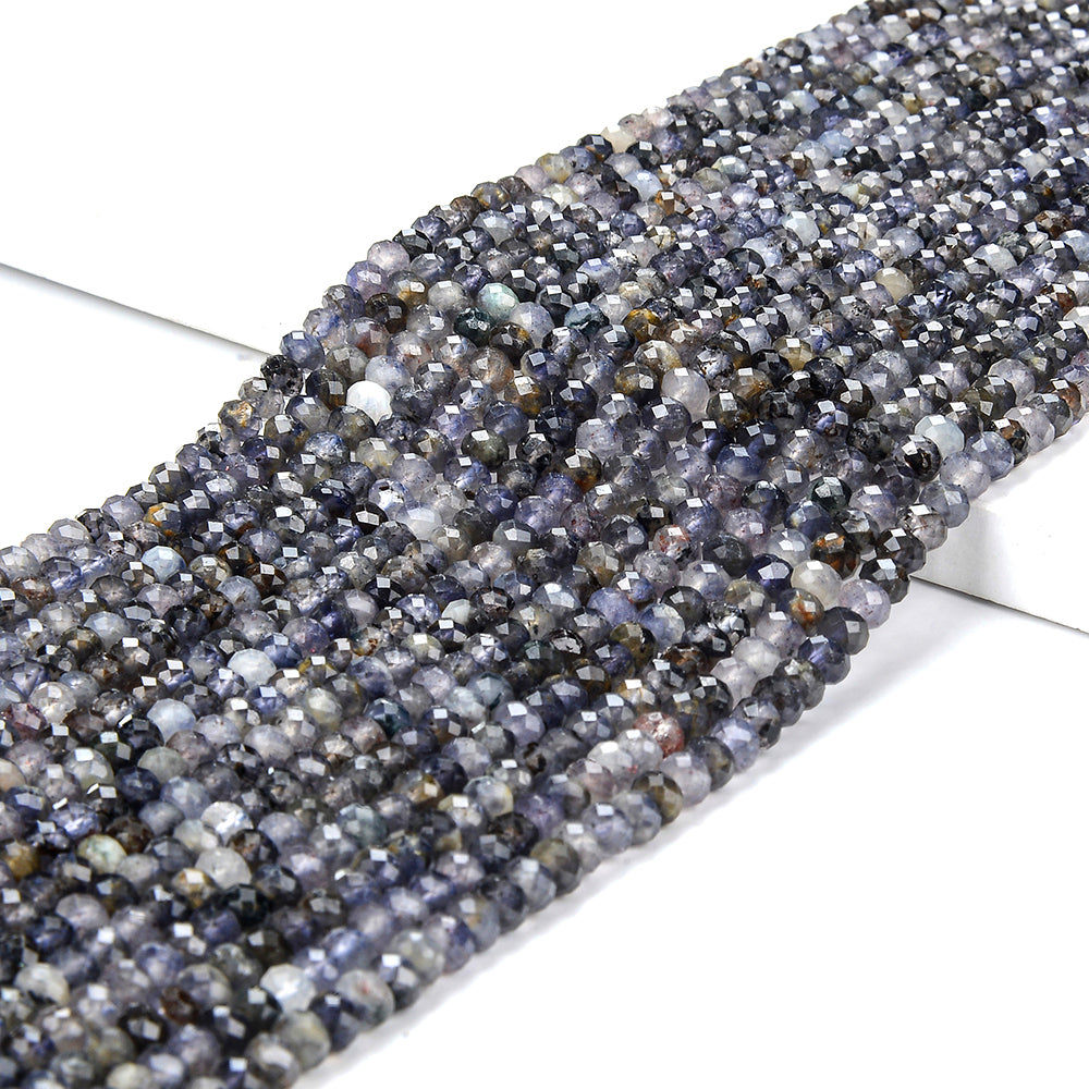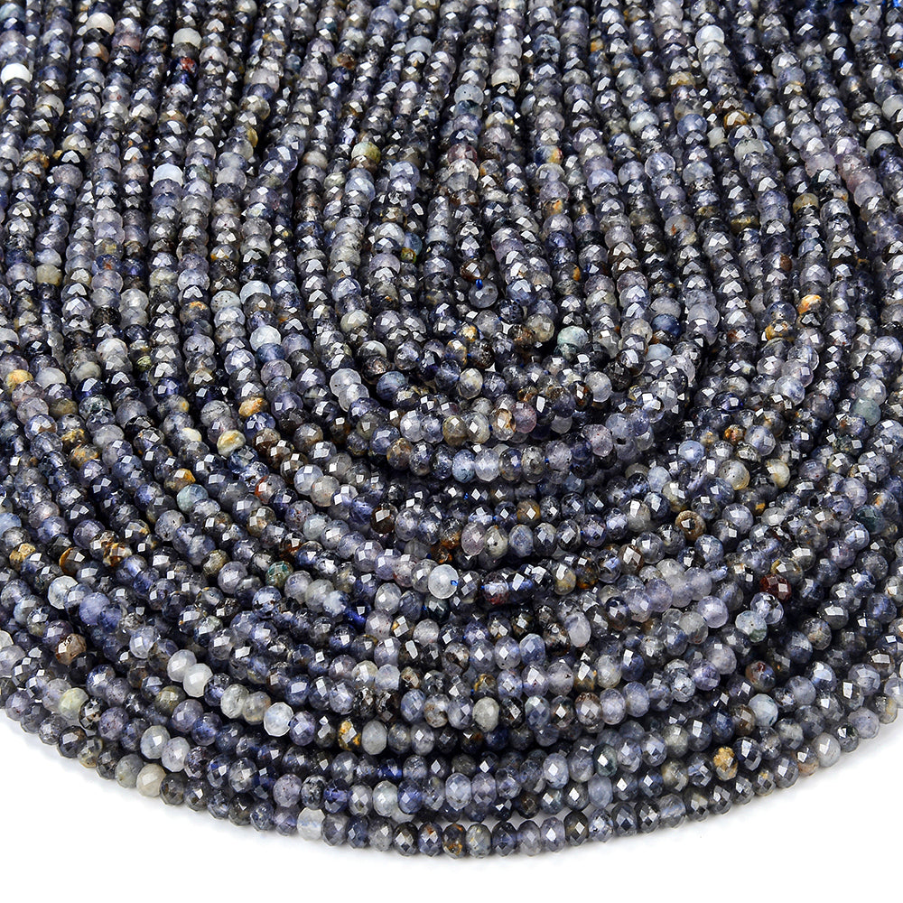 Natural Iolite Gemstone Grade A Micro Faceted Rondelle 4X3MM Loose Beads (P92)