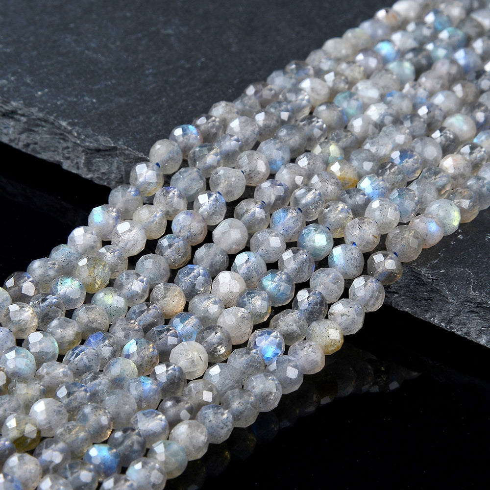 Natural Labradorite Gemstone Grade AAA Micro Faceted Round 2-3MM 4MM Loose Beads 15 inch Full Strand (P57)