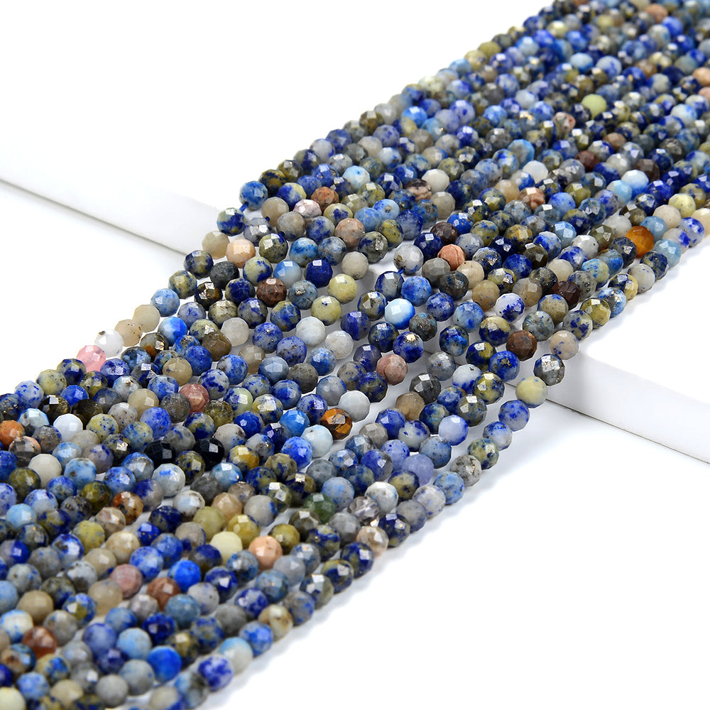 Natural Lapis Gemstone Micro Faceted Round 2MM 3MM Loose Beads 15 Inch Full Strand (P65)