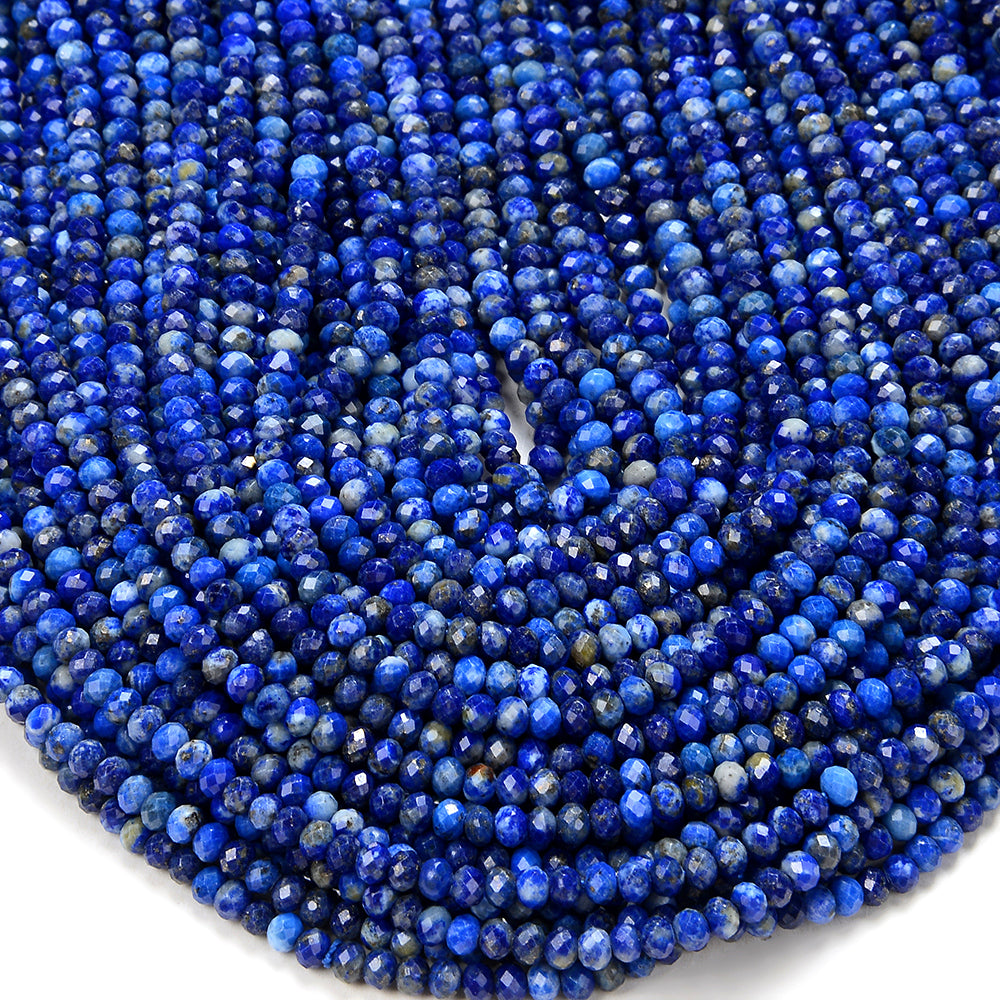 Natural Lapis Lazuli Gemstone Grade AA Micro Faceted Rondelle 3X2MM 4X3MM Loose Beads 15 inch Full Strand (P61 P62)