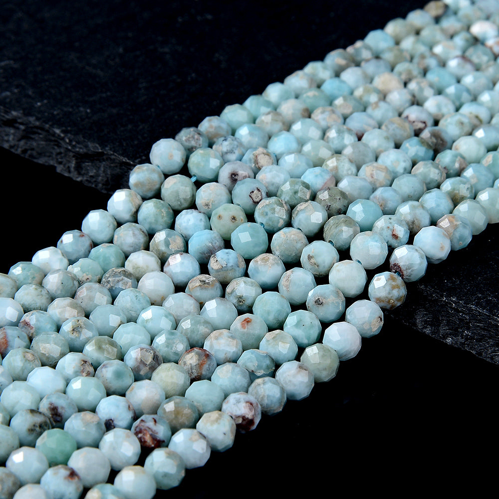 Natural Larimar Gemstone Grade A Micro Faceted Round 2MM 3MM 5MM Loose Beads 15 inch Full Strand (P52)
