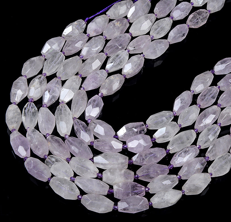 Natural Lavender Amethyst Gemstone 11X20-14X26MM Faceted Rice Tube Loose Beads (D427)