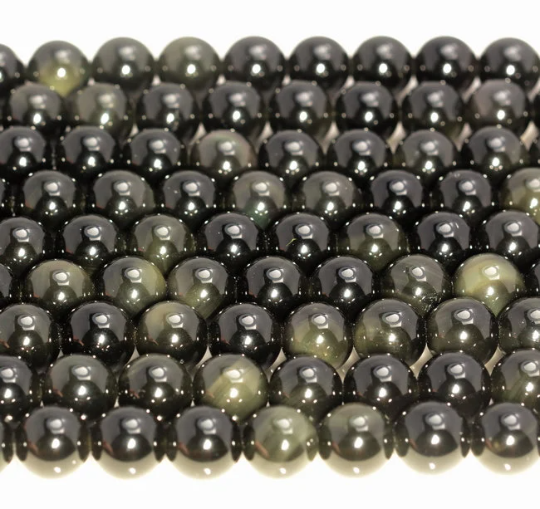 Grade A Rainbow Obsidian (Grade A) gemstone Round shaped, measures approximately 6MM, features a wonderful luster with excellent polish. Drilled hole. Color, tone, and quality of these Obsidian (Grade A) beads are well matched on strand.