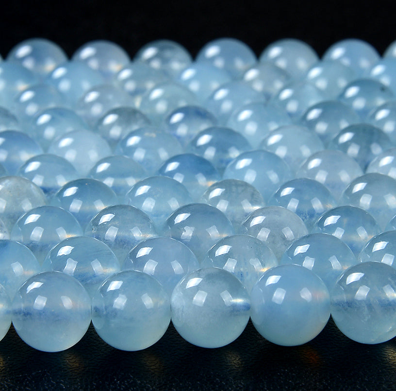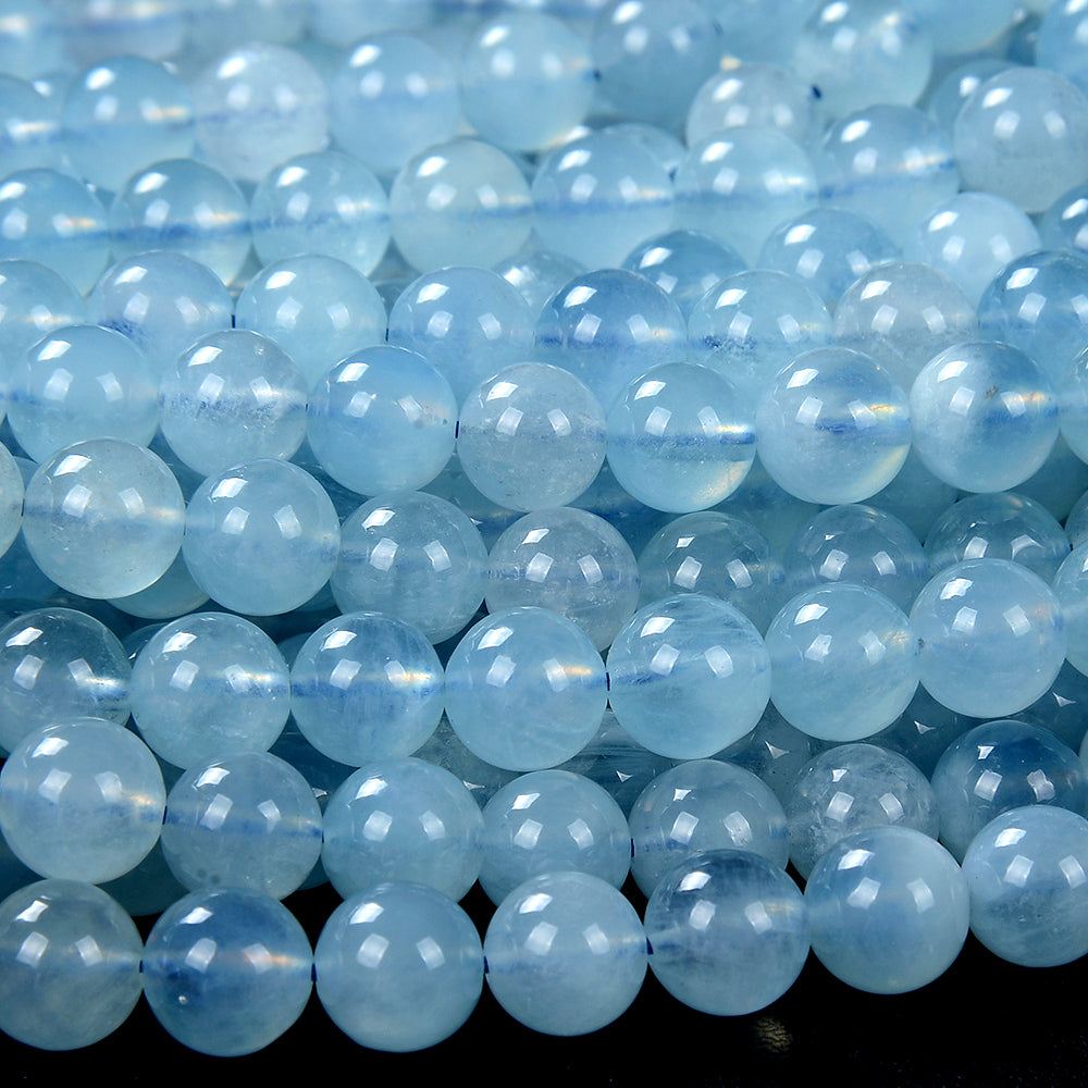 Natural Aquamarine Gemstone Grade AAA Round 6MM 7MM 8MM 9MM 10MM 11MM 12MM 13MM 14MM 15MM Loose Beads (D122)