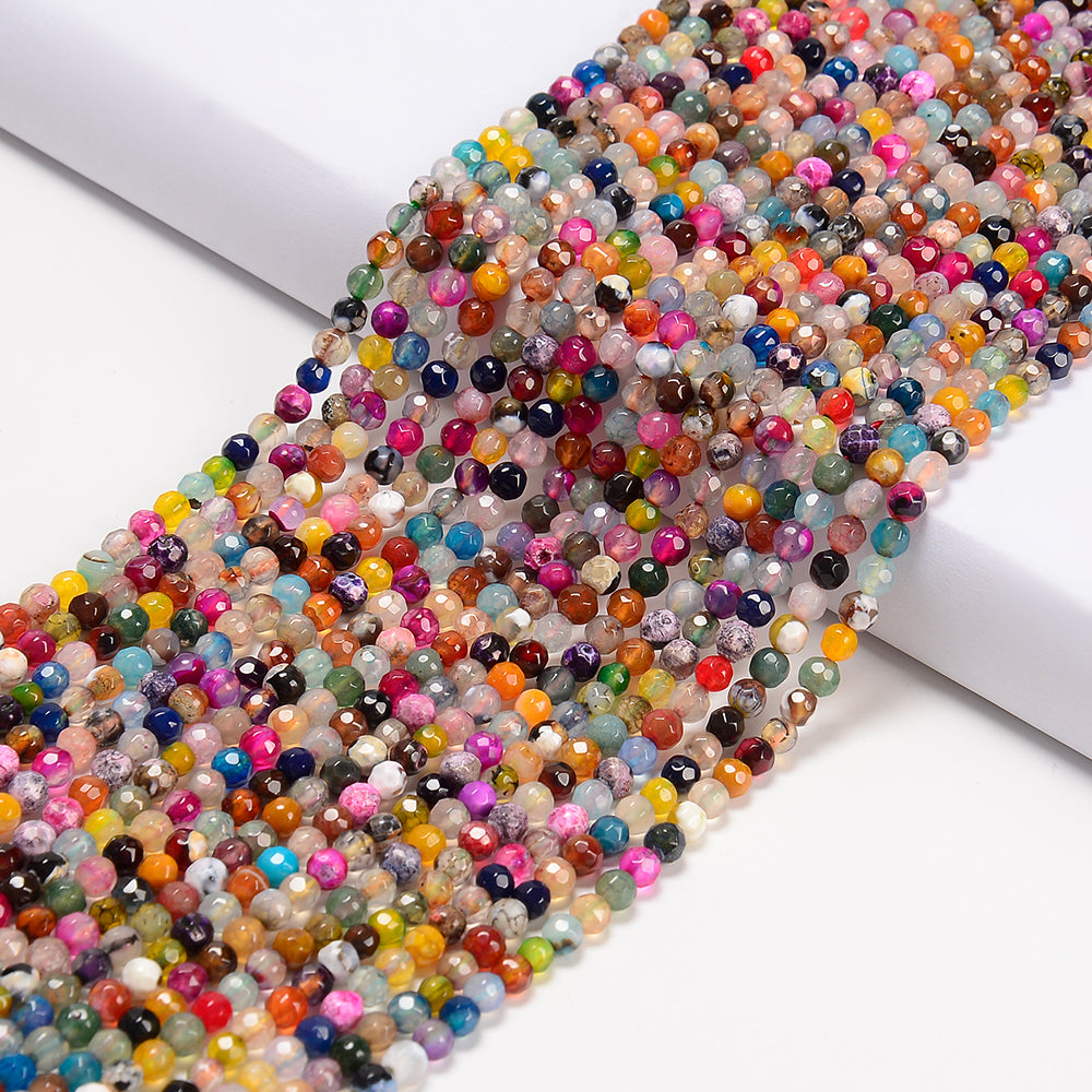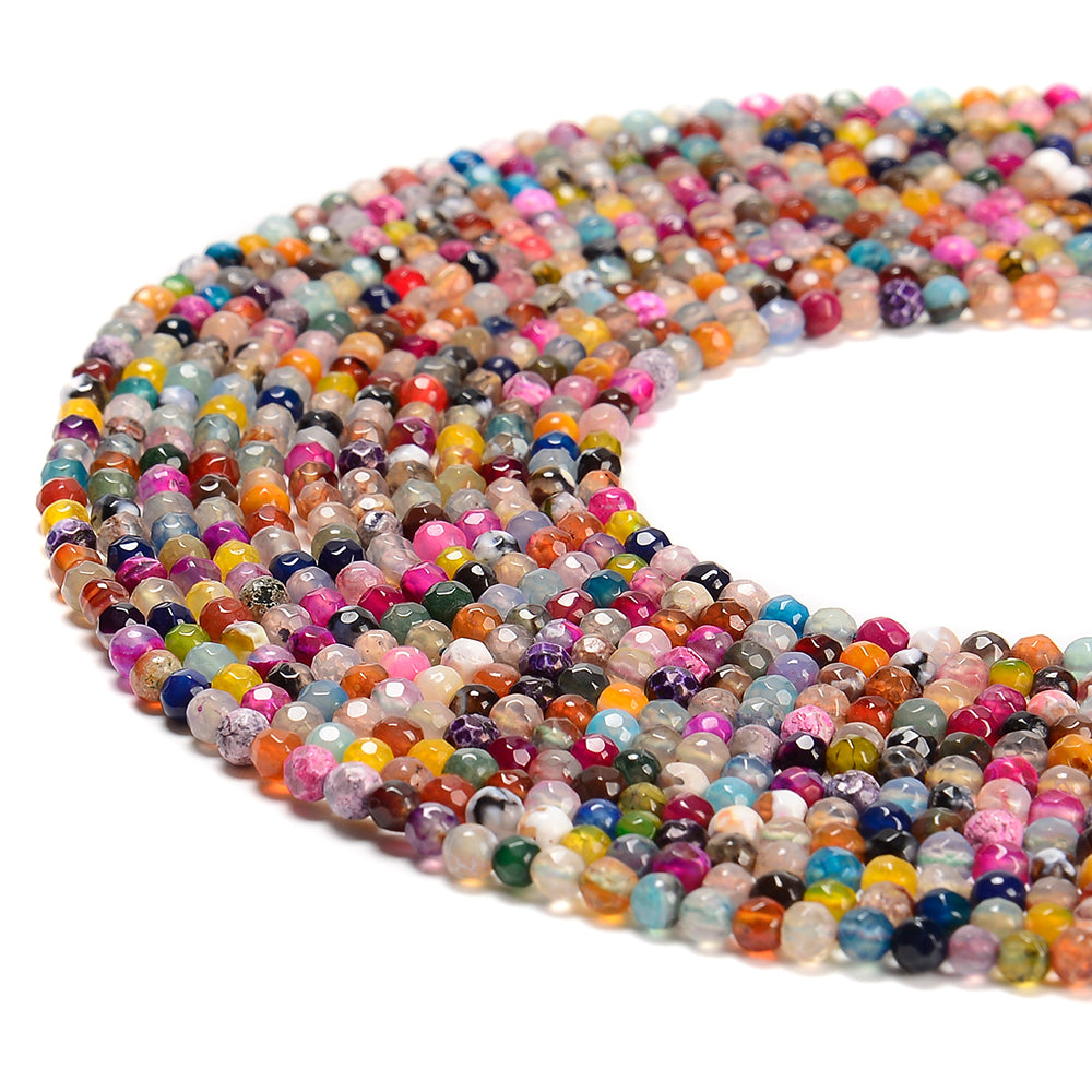 Multi Color Agate Gemstone Faceted Round 4MM Loose Beads 15 inch Full Strand (80019669-P111)