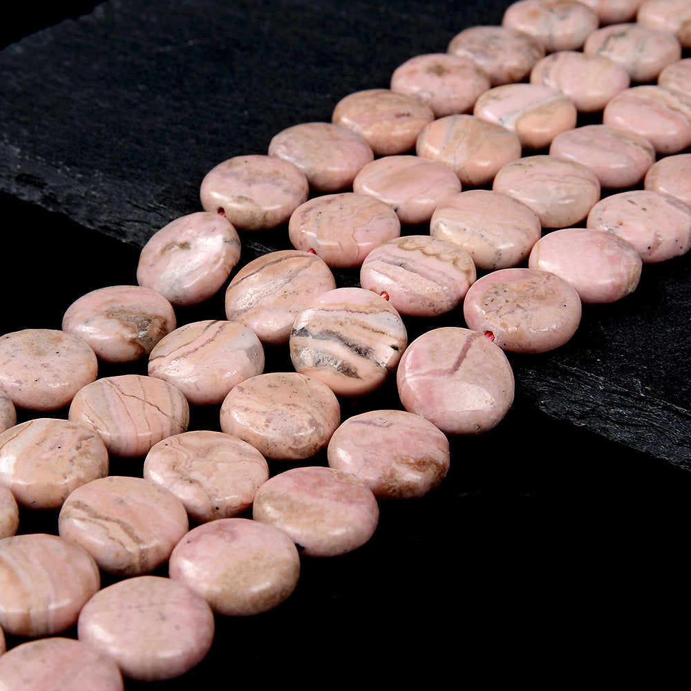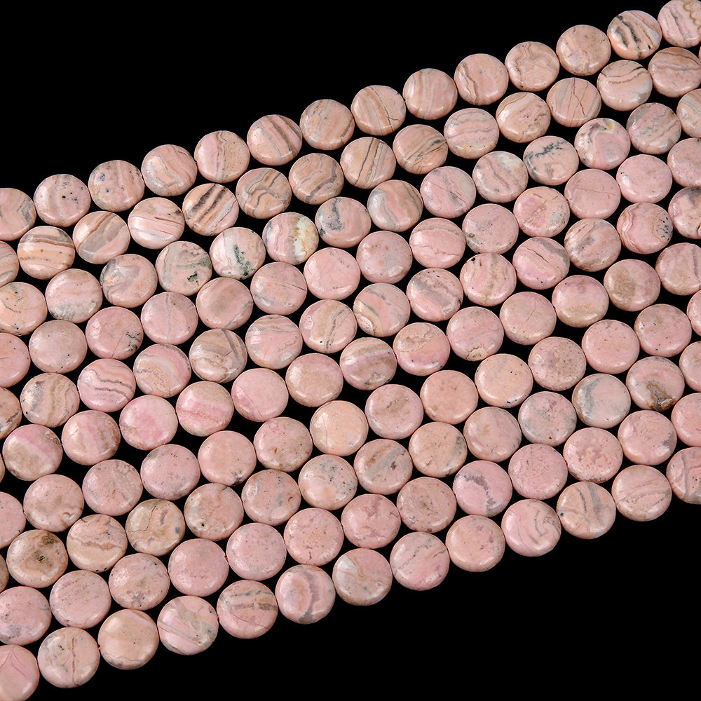 Natural Argentina Rhodochrosite Gemstone Grade A Flat Round Button 14MM 18MM 25MM Loose Beads (D352)