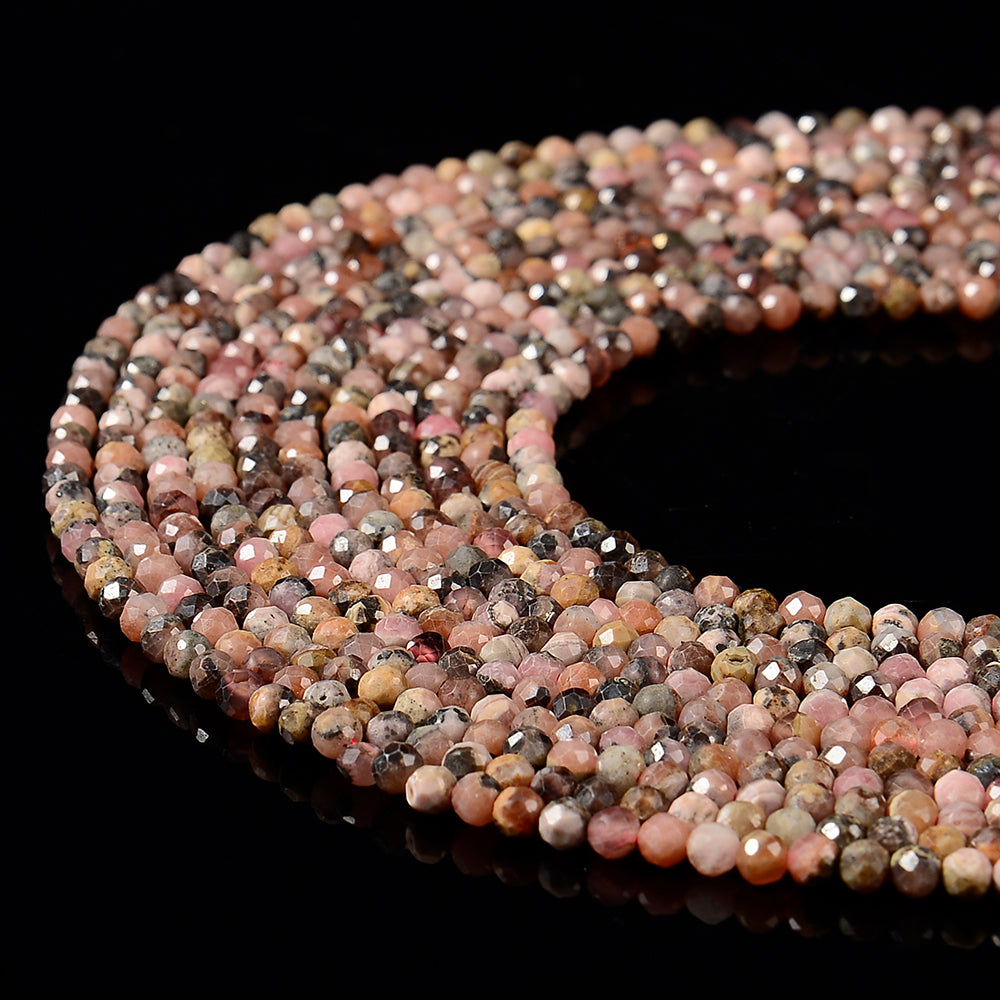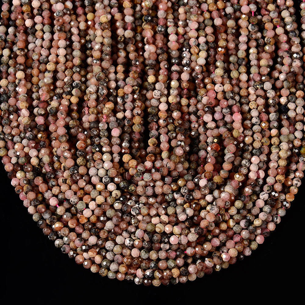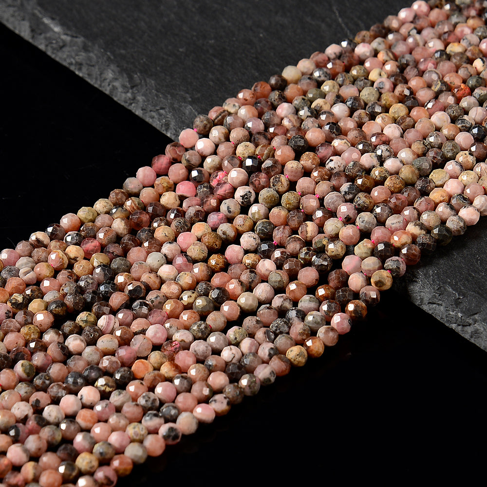 Natural Argentina Rhodochrosite Gemstone Micro Faceted Round 4MM 5MM Loose Beads 15 inch Full Strand (P111)