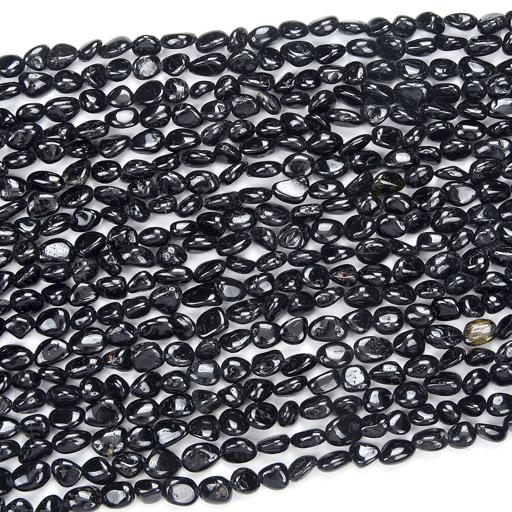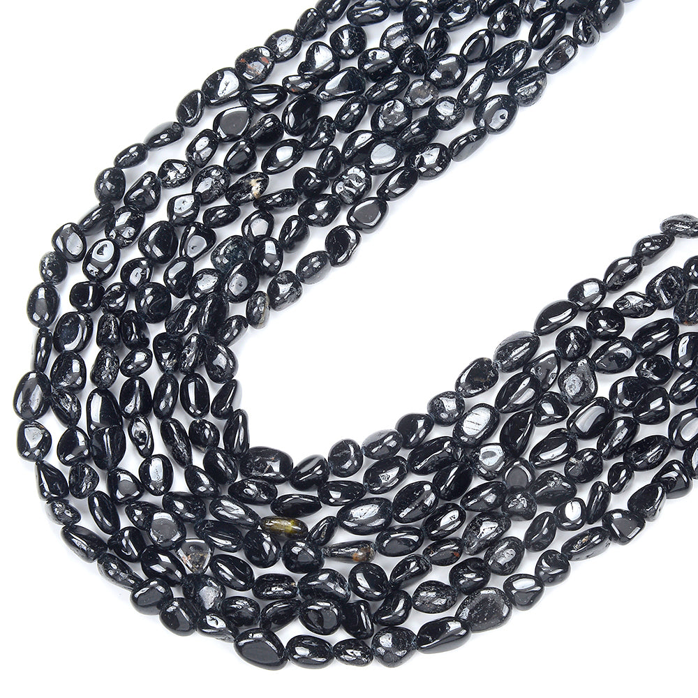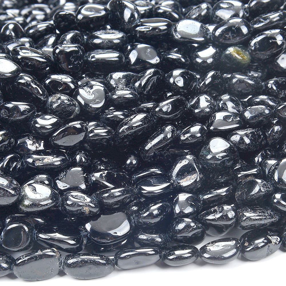 Natural Black Tourmaline Gemstone 8-10MM Pebble Nugget Loose Beads (D468)