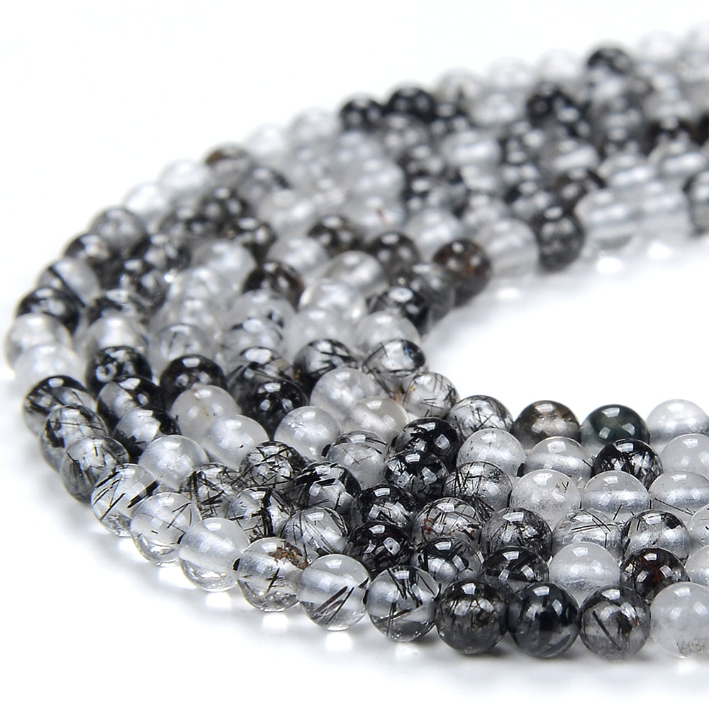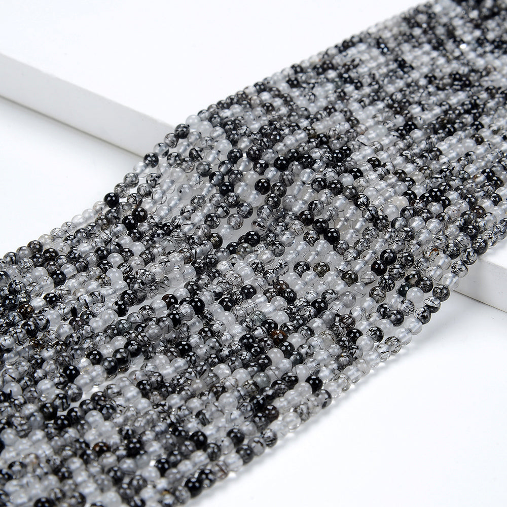 Natural Black Tourmaline Rutilated Quartz Gemstone Grade AAA Round 2MM 3MM Loose Beads 15 Inch Full Strand (P63)
