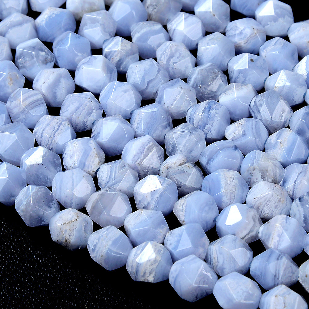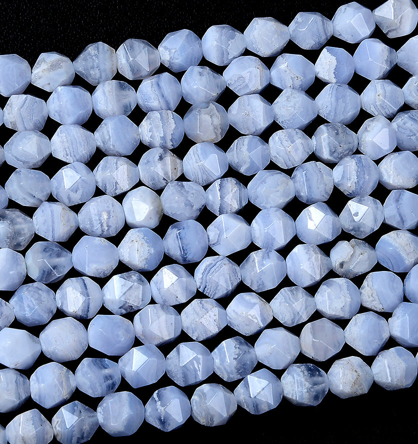 Natural Chalcedony Blue Lace Agate Gemstone Grade A Star Cut Faceted 5MM 7MM Loose Beads (D140)
