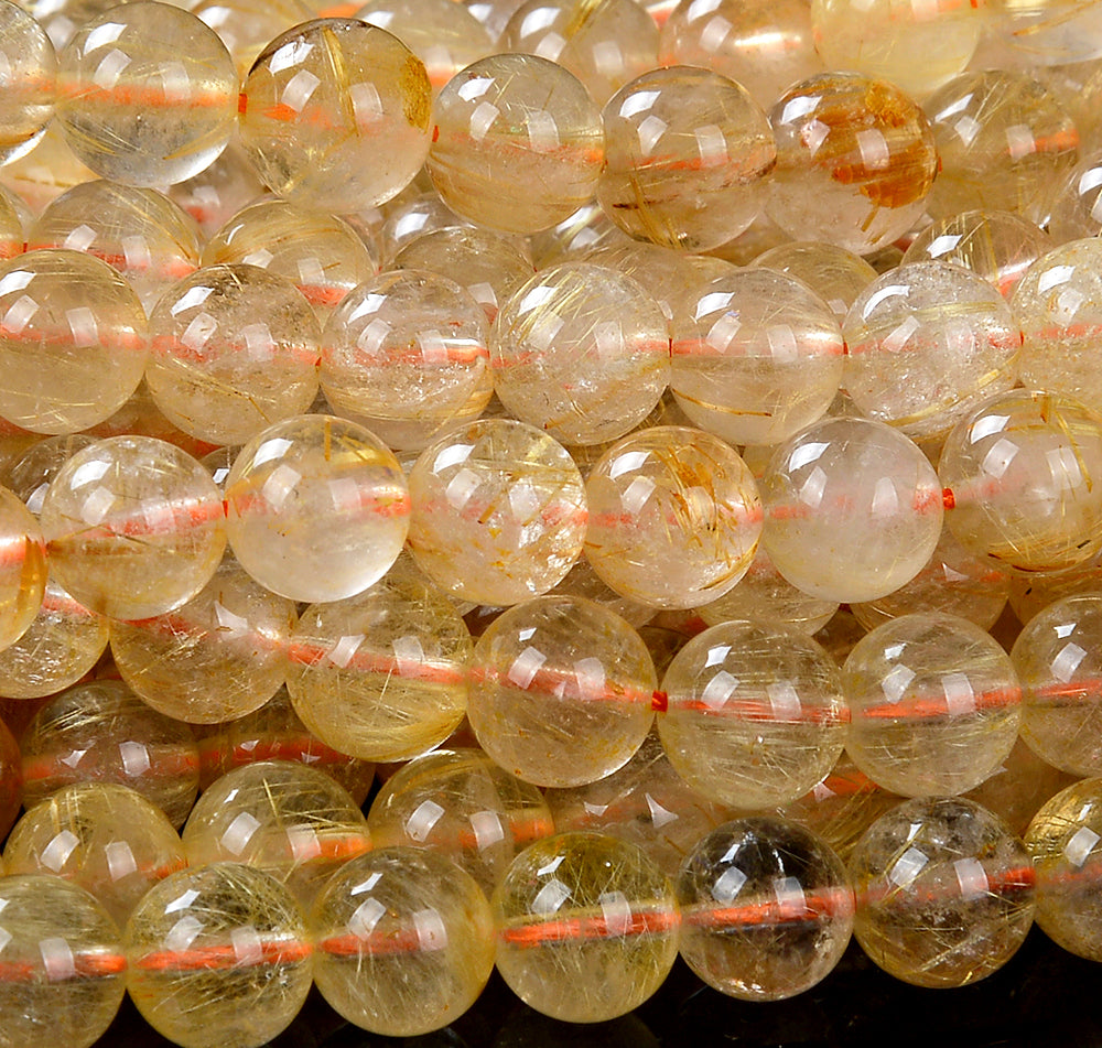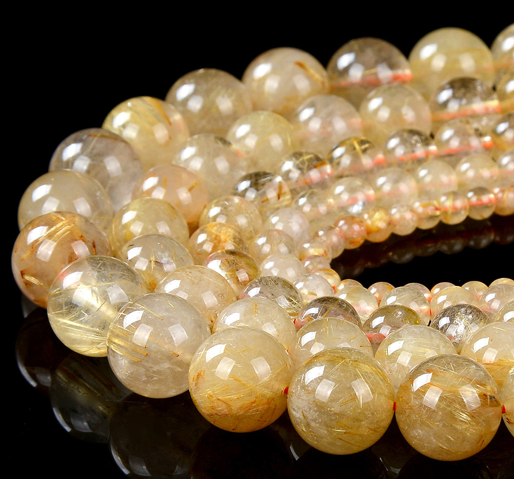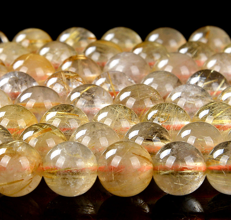 Natural Golden Rutilated Quartz Gemstone Grade AA Round 4MM 5MM 6MM 7MM 8MM 9MM 10MM 11MM 12MM 13MM Loose Beads (D256 D257)