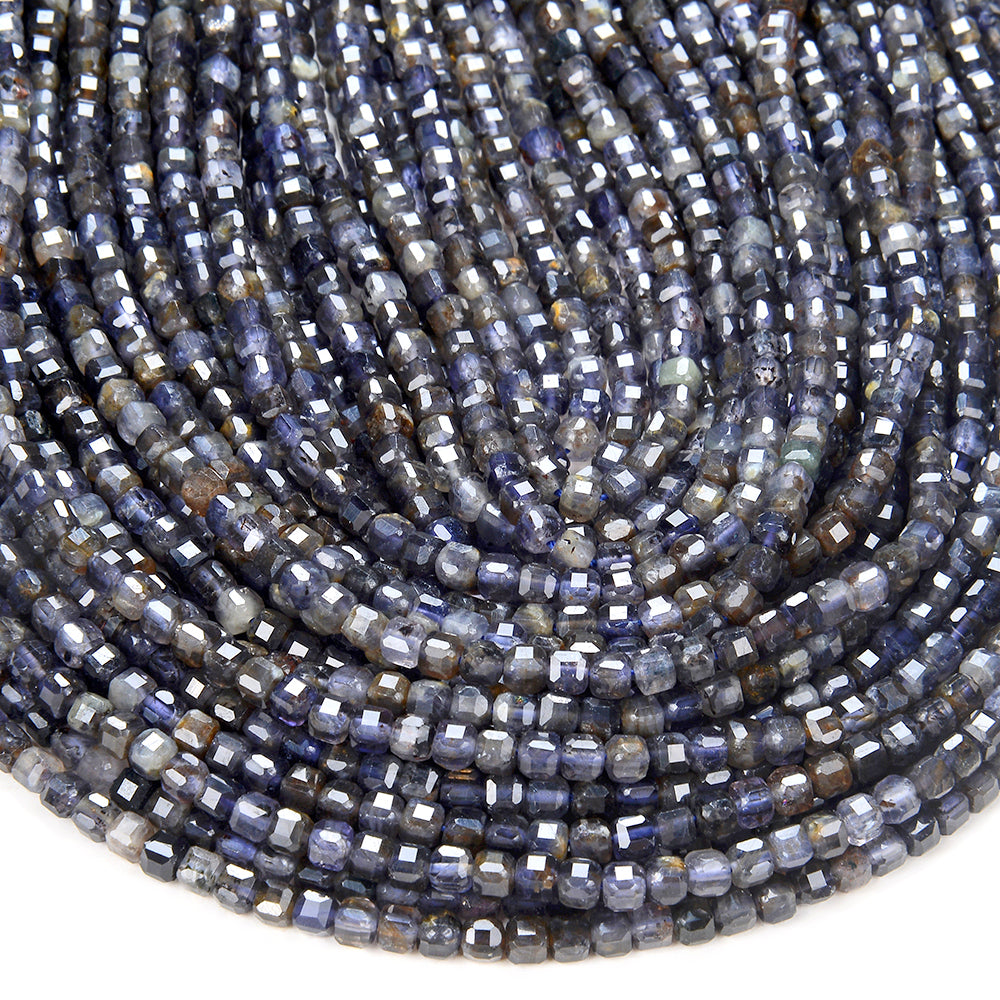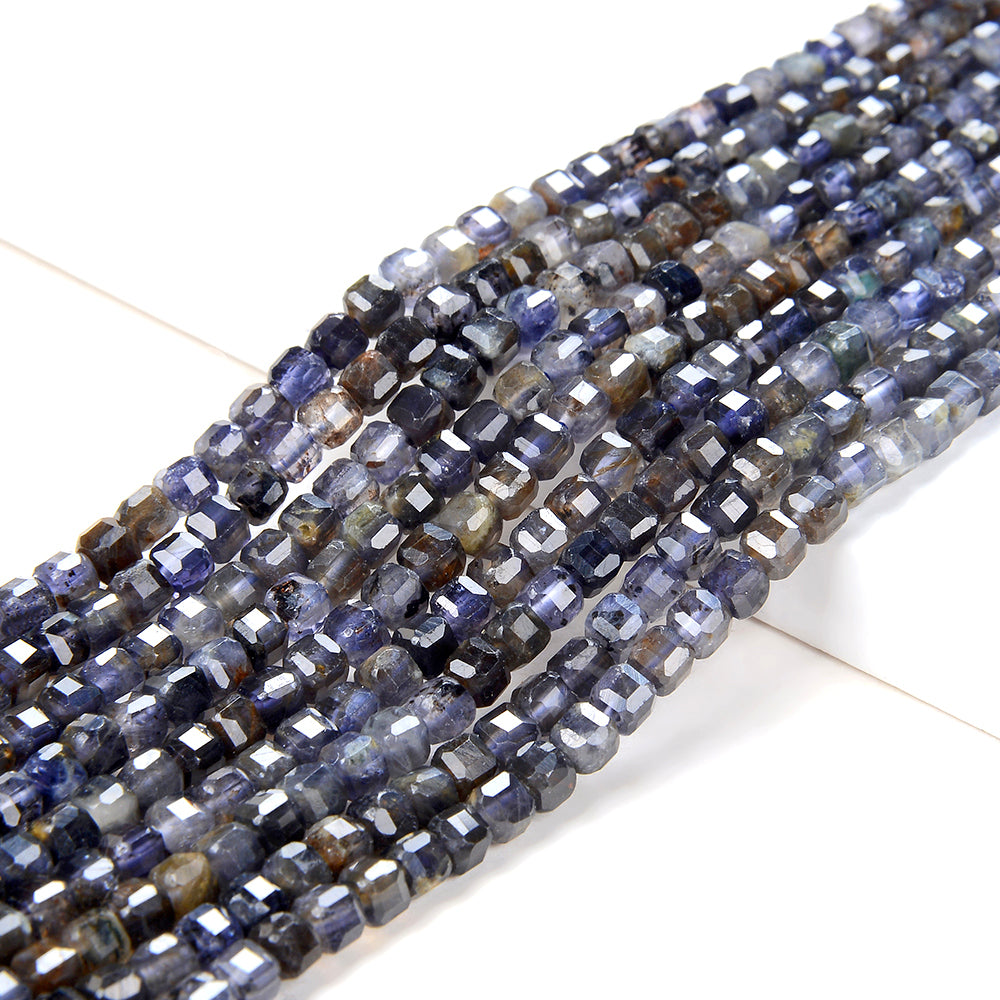 Natural Iolite Gemstone Grade A Micro Faceted Diamond Cut Cube 4MM 5MM Loose Beads (P41)