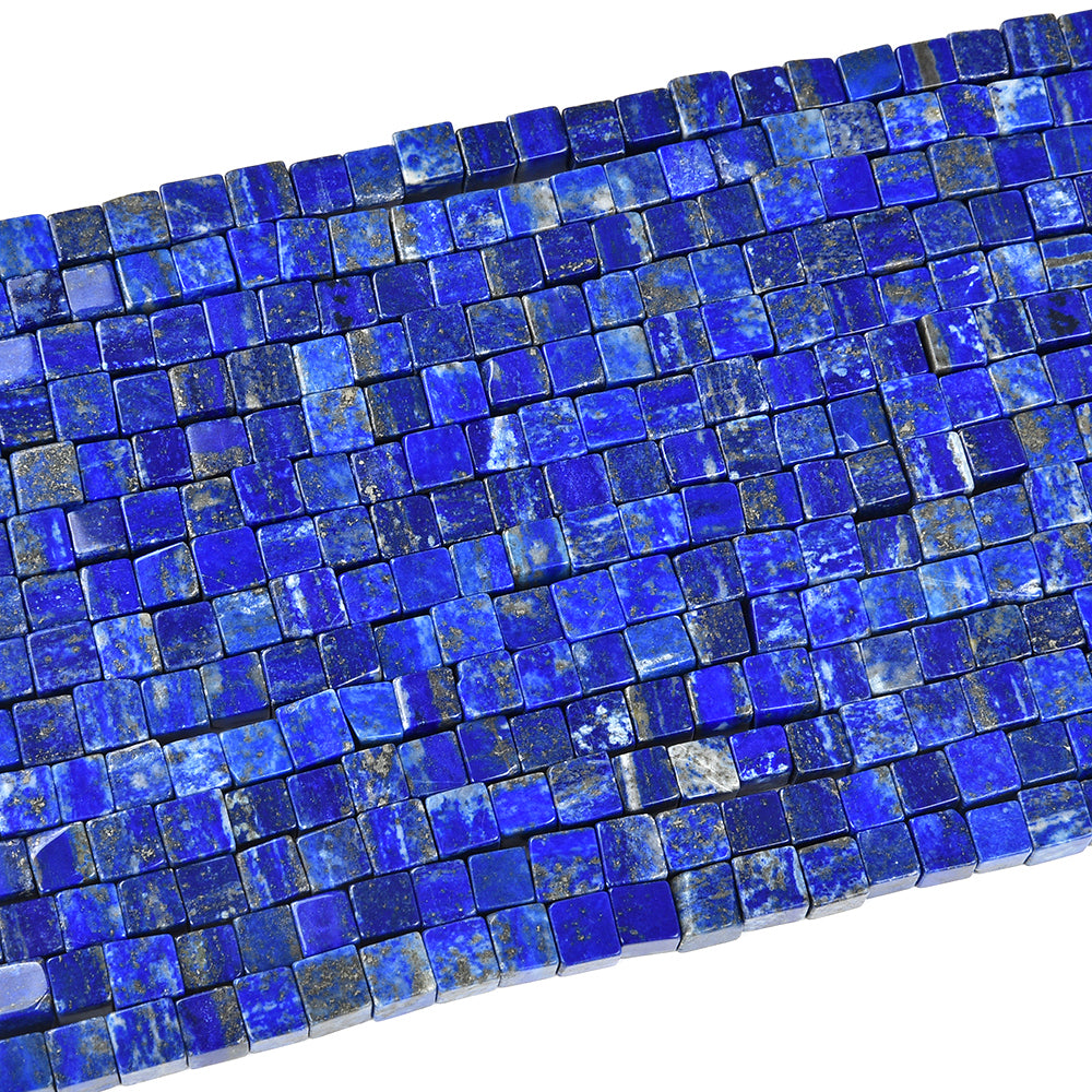 Lapis Lazuli Gemstone, Square Cube shaped, measures approximately 6-7MM , features a wonderful luster with excellent polish. Drilled hole. Color, tone, and quality of these Lapis Lazuli beads are well matched on strand.