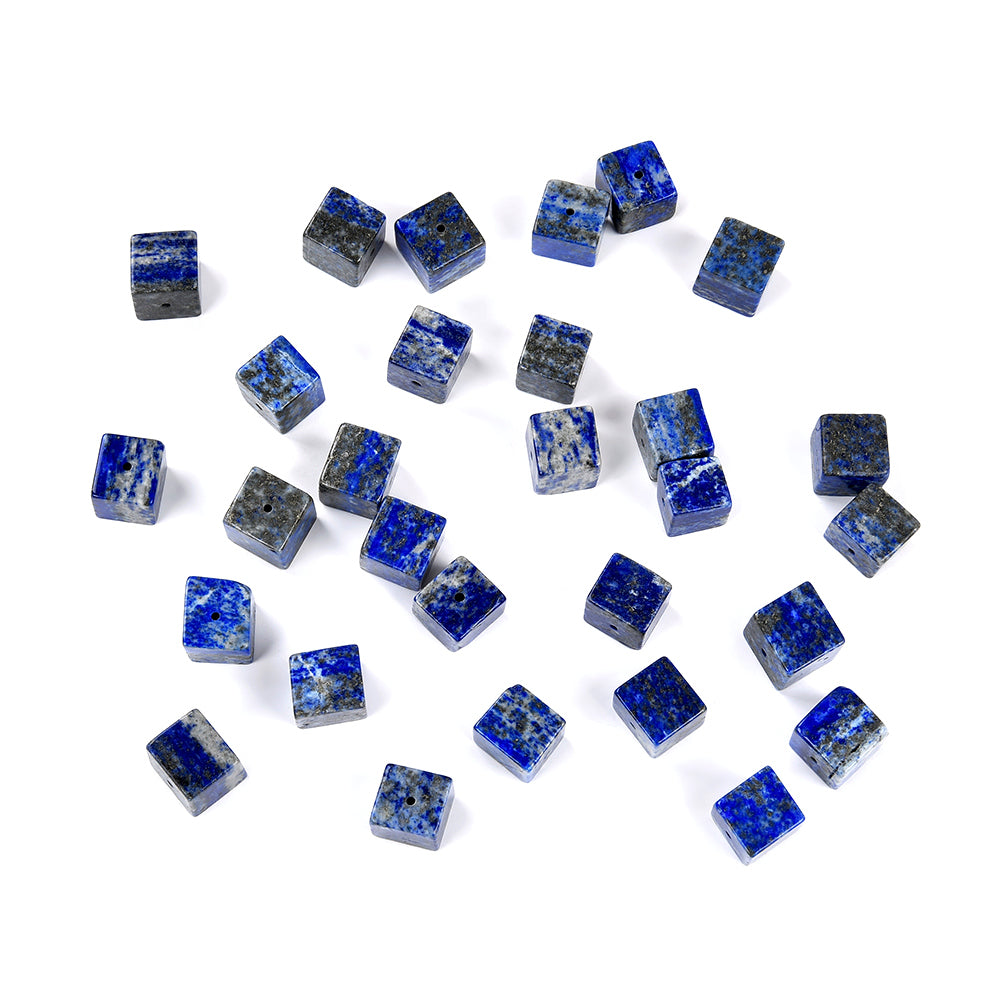 Lapis Lazuli Gemstone, Square Cube shaped, measures approximately 11-12MM , features a wonderful luster with excellent polish. Drilled hole. Color, tone, and quality of these Lapis Lazuli beads are well matched on strand.